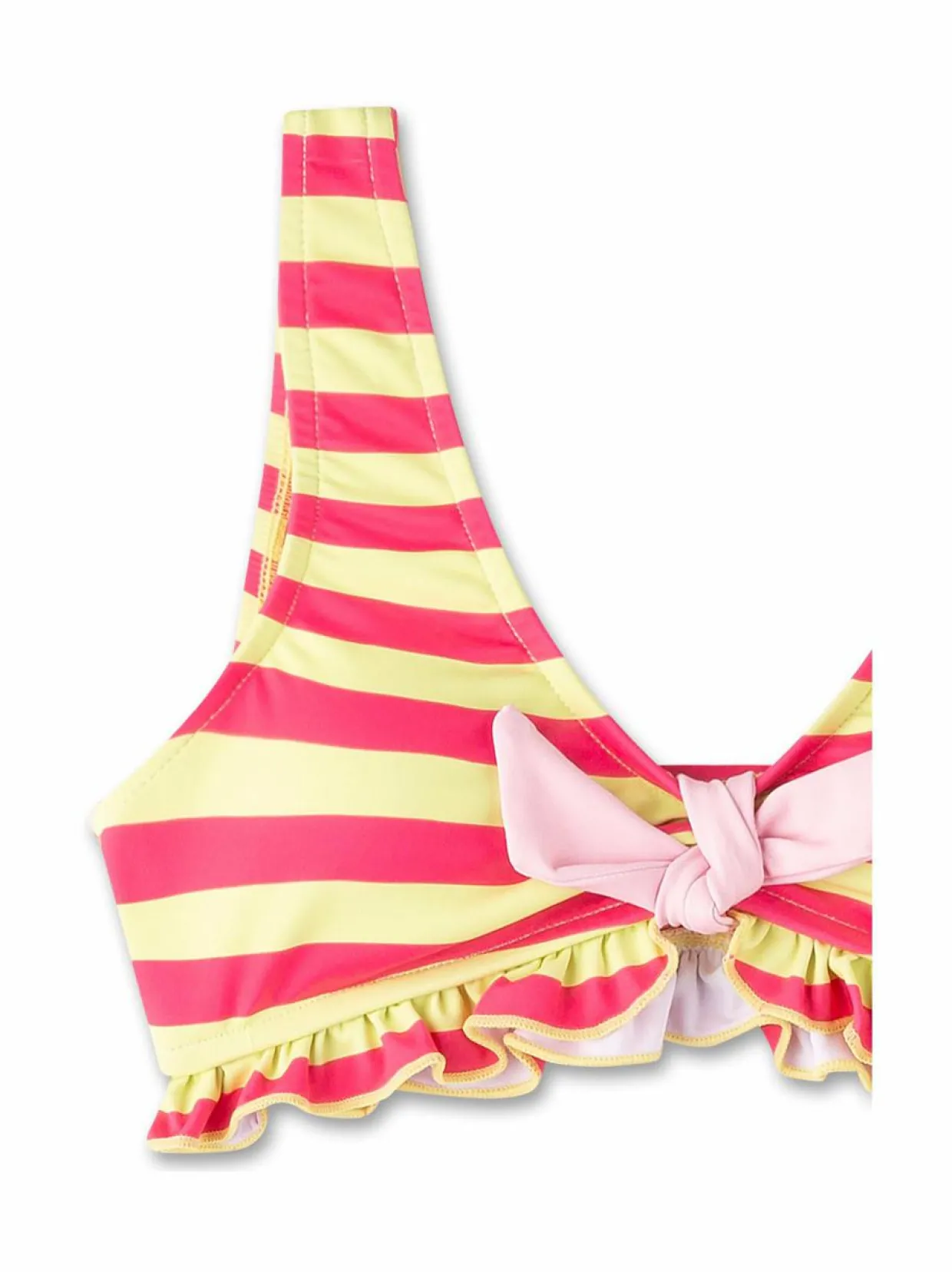 Sanetta-merkin Stripes-bikinit on valmistettu pehmeästä ja joustavasta materiaalista, joka sopii täydellisesti uimiseen, auringonottoon ja aktiiviseen ulkoilmaelämään. Bikinit on suunniteltu raikkaalla ja raidallisella kankaalla ja siinä on söpö rusettisomiste edessä. Raitabikinit on valmistettu polyesteristä ja elastaanista. Polyesteri on kestävä ja nopeasti kuivuva materiaali, joka sopii erinomaisesti uima-asuihin. Elastaani tekee materiaalista joustavan ja mukavan käyttää.