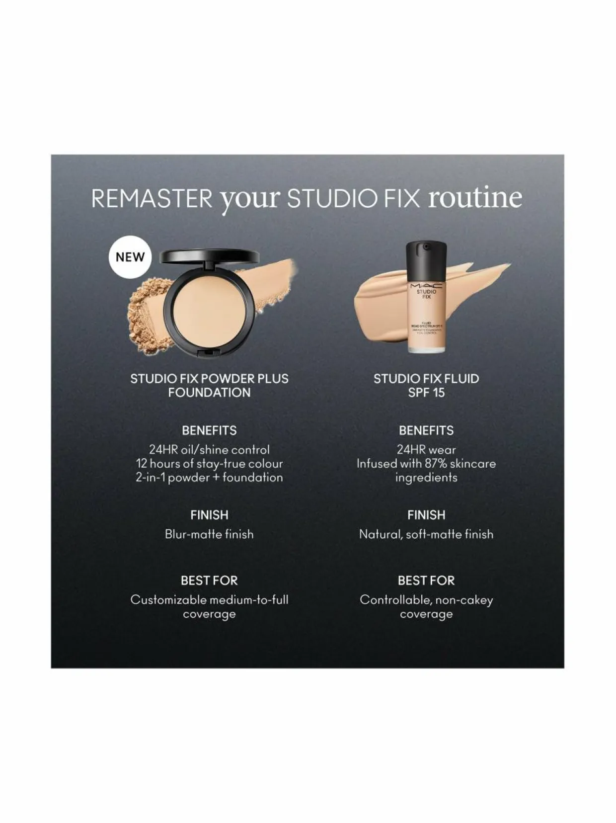 Studio Fix Powder Plus Foundation on kiinteä, puuterimainen mattameikkivoide, joka peittää epäpuhtauksia, pigmenttimuutoksia, suuria ihohuokosia ja punaisuutta. Lopputuloksena on sileä, virheetön ja kaunis iho.