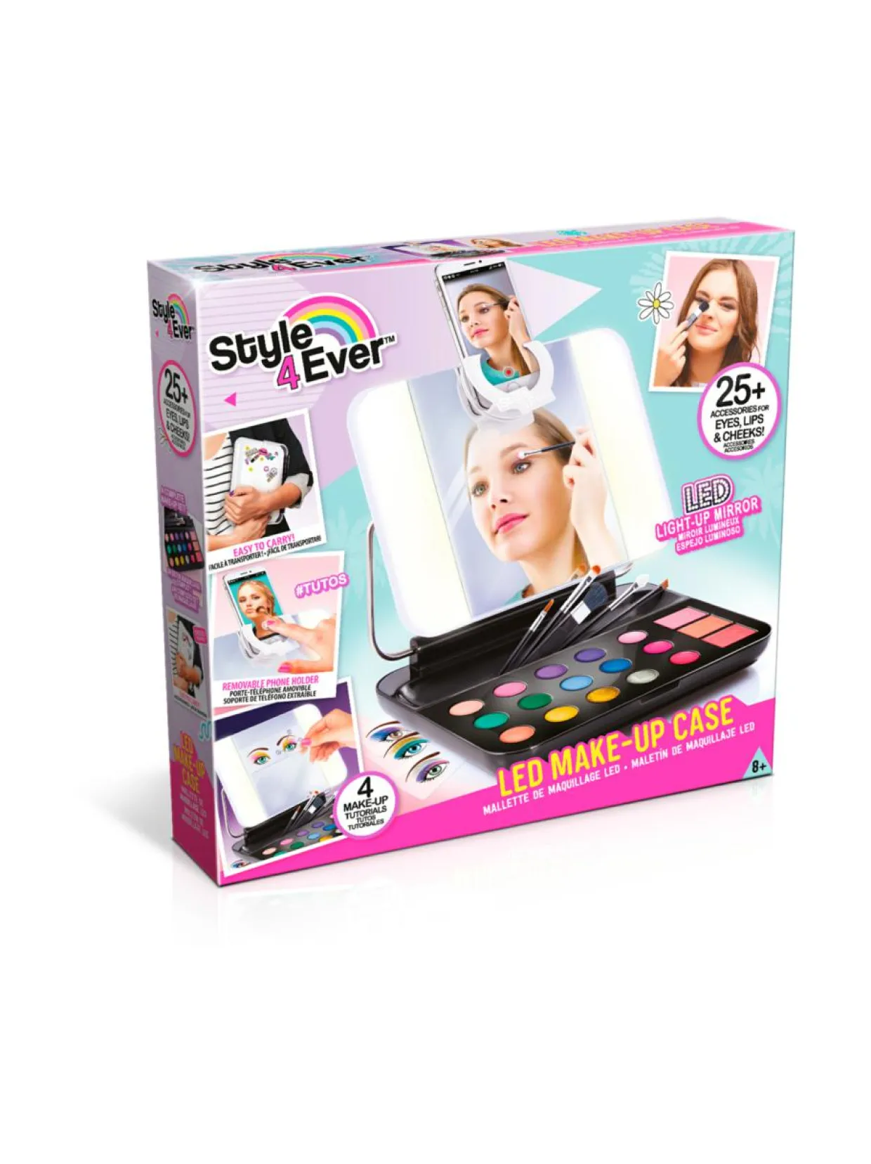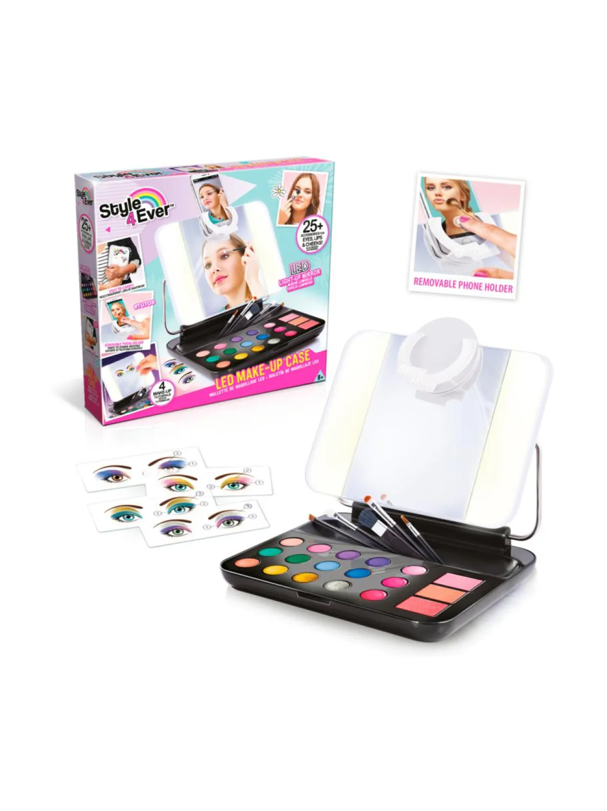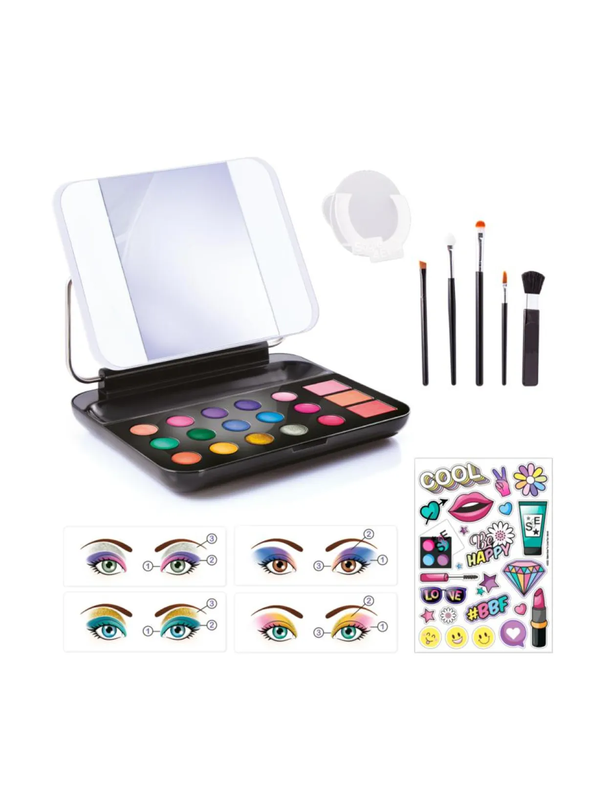 Todella ammattimainen meikkipaletti, jossa on LED-valolla valaistu peili. Luo oma tyylisi ja opettele meikkaamaan mukana olevien mallien avulla. Sisältää luomivärejä, huulikiillon, poskipunia ja siveltimiä. Helppo kuljettaa mukana.