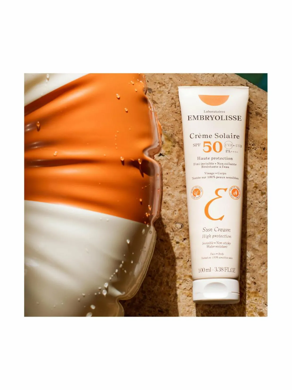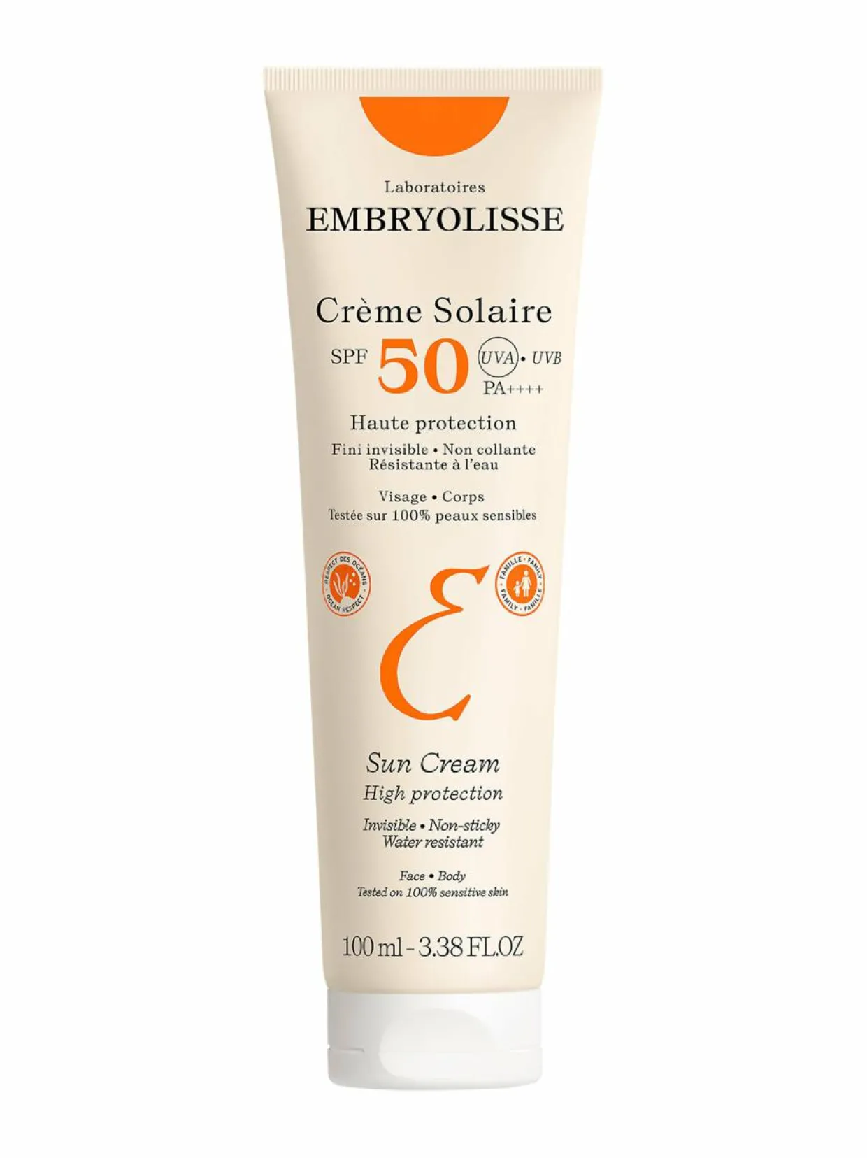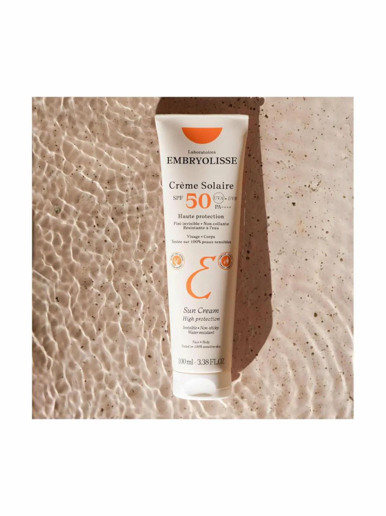 Embryolisse Sun Cream SPF 50 on aurinkovoide, joka suojaa ihoa tehokkaasti auringon haitallisilta säteiltä. Se sisältää antioksidanttista roucou-öljyä, joka auttaa suojaamaan ihoa vapailta radikaaleilta. Aurinkovoide on kevyt ja imeytyy nopeasti ihoon jättäen mattapinnan. Se sopii sekä kasvoille että vartalolle. Tuote on testattu herkälle iholle. Käyttö: Levitä aurinkovoidetta tasaisesti iholle 20 minuuttia ennen auringolle altistumista. Uusi käyttö säännöllisesti, erityisesti uinnin, hikoilun tai pyyhkimisen jälkeen.