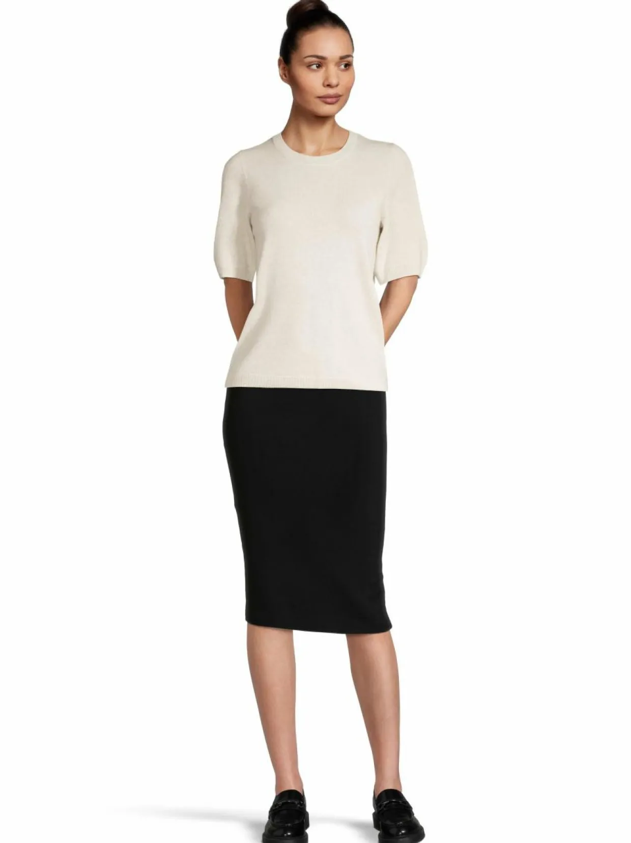 Kevyt ja elegantti lyhythihainen neuleousero, joka on pehmeää villaa ja ylellistä kashmiria. Kevyt, pehmeä neulos takaa erinomaisen mukavuuden. Neuleessa on pyöreä pääntie ja yksinkertainen muotoilu. Joustoresorit on helmassa, hihansuissa sekä pääntiellä.