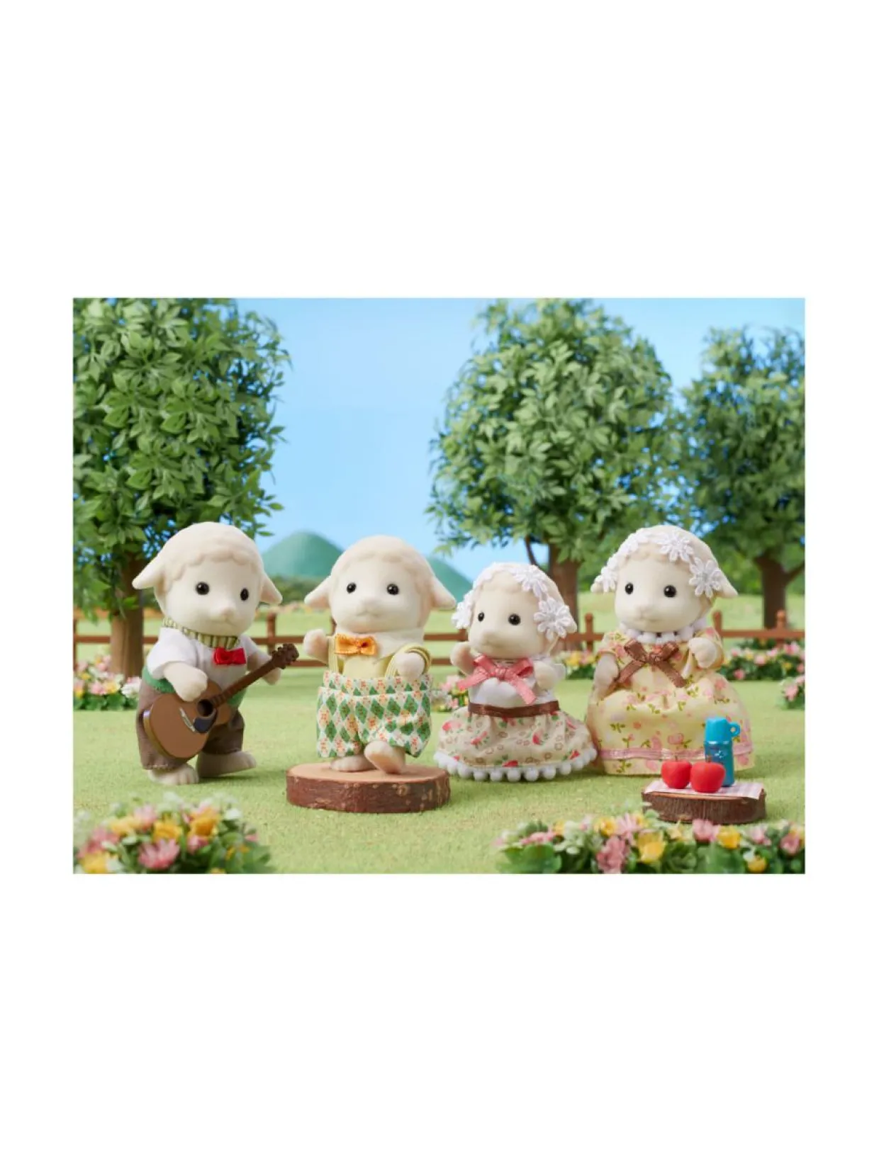 Lammasperhesettiin kuuluu koko lammasperhe: isä Ewan, äiti Barbara, poika Winton ja tytär Lona. Lammasäidillä ja -tyttärellä on suloiset otsapannat ja kaikkien hahmojen kädet ja jalat liikkuvat, joten ne voi asetella erilaisiin asentoihin. Kankaasta valmistetut asut voi riisua ja pukea hahmoille.