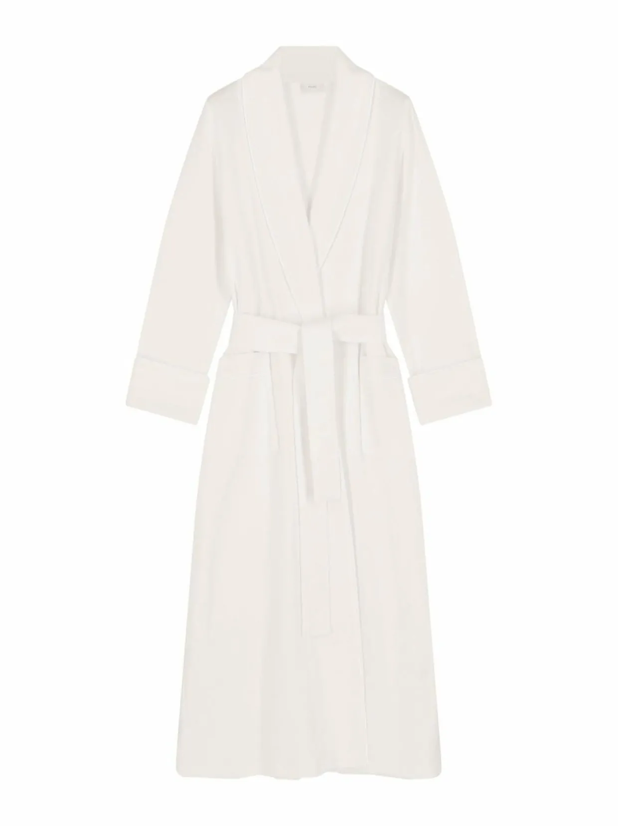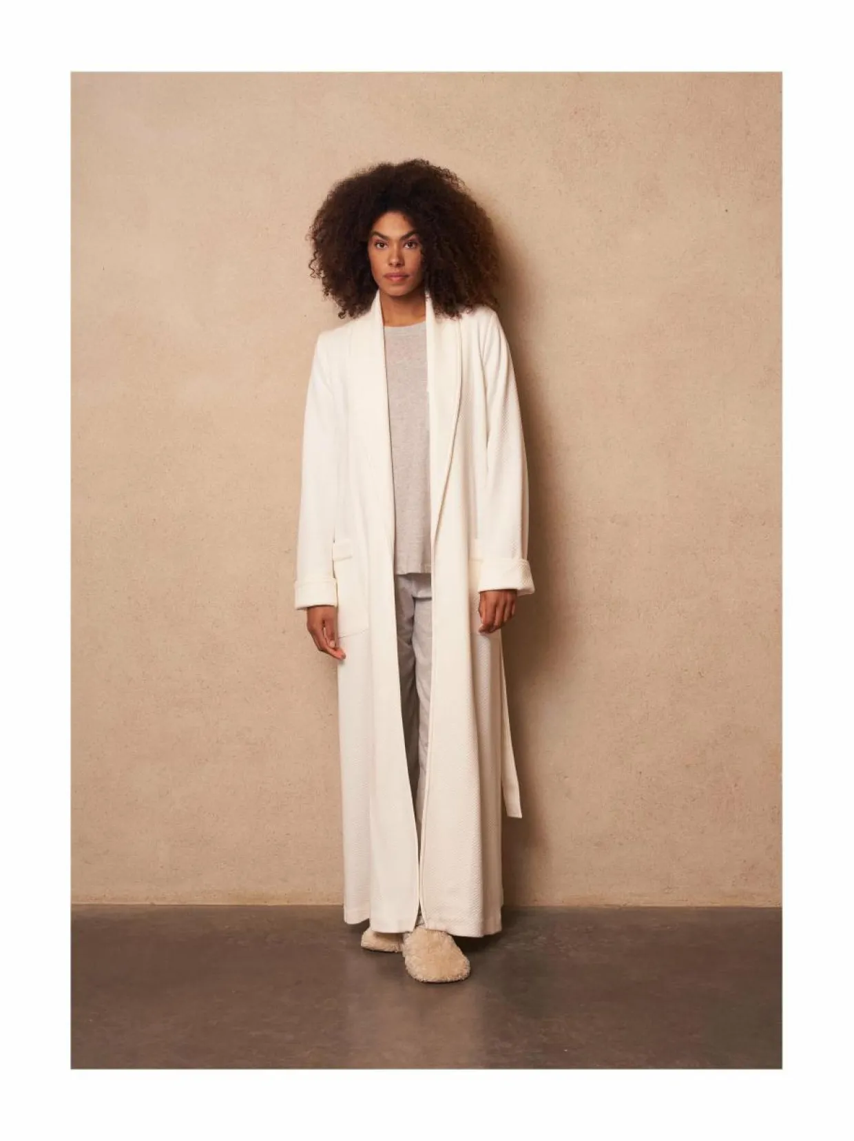Tyylikkäästi tikattu, pitkä aamutakki on loistava valinta rentoon oleiluun kotona. Mukana yhteensopiva vyö, edessä tilavat taskut. Materiaali on pehmeän tuntuista modaalisekoitusta.