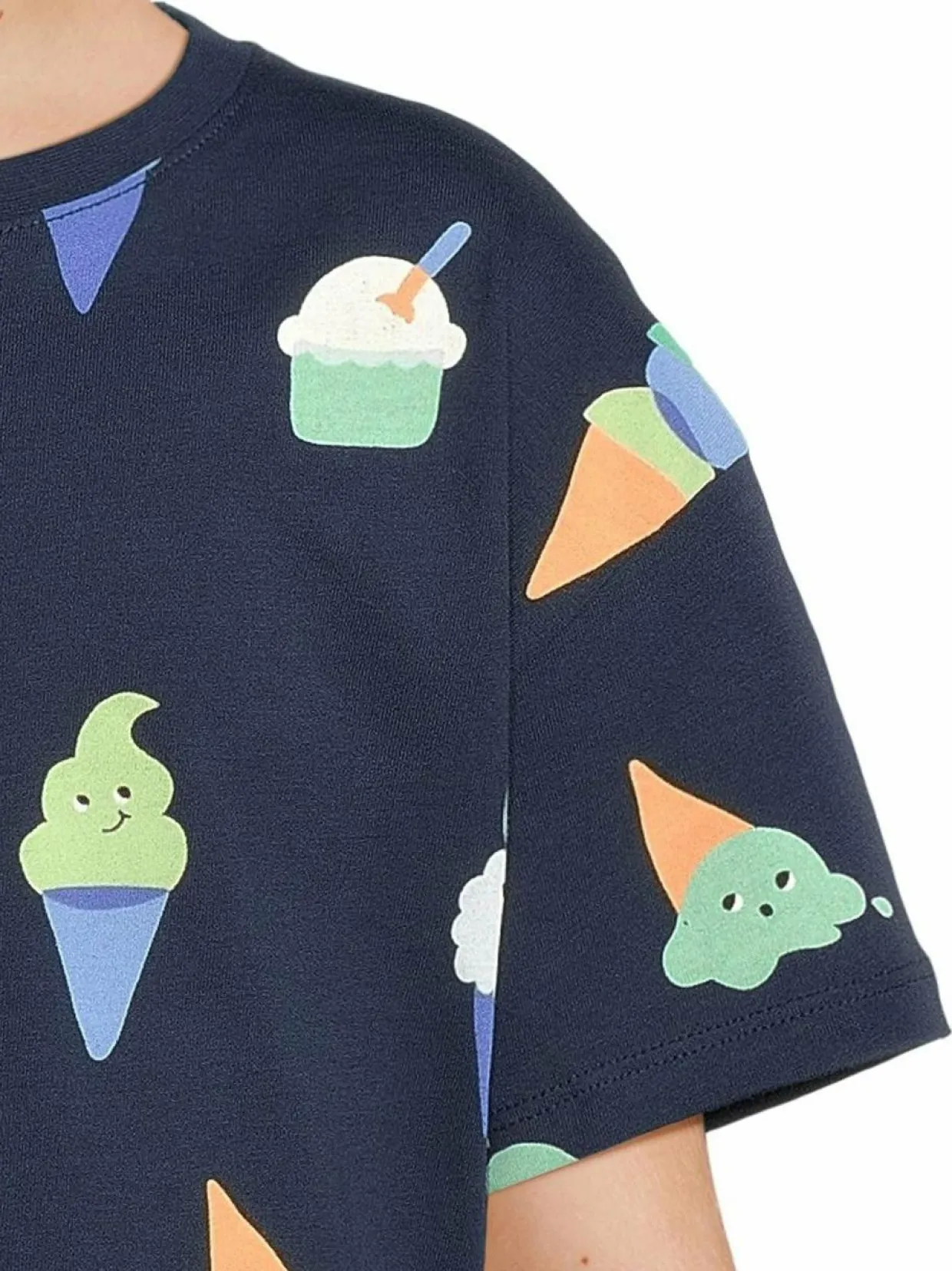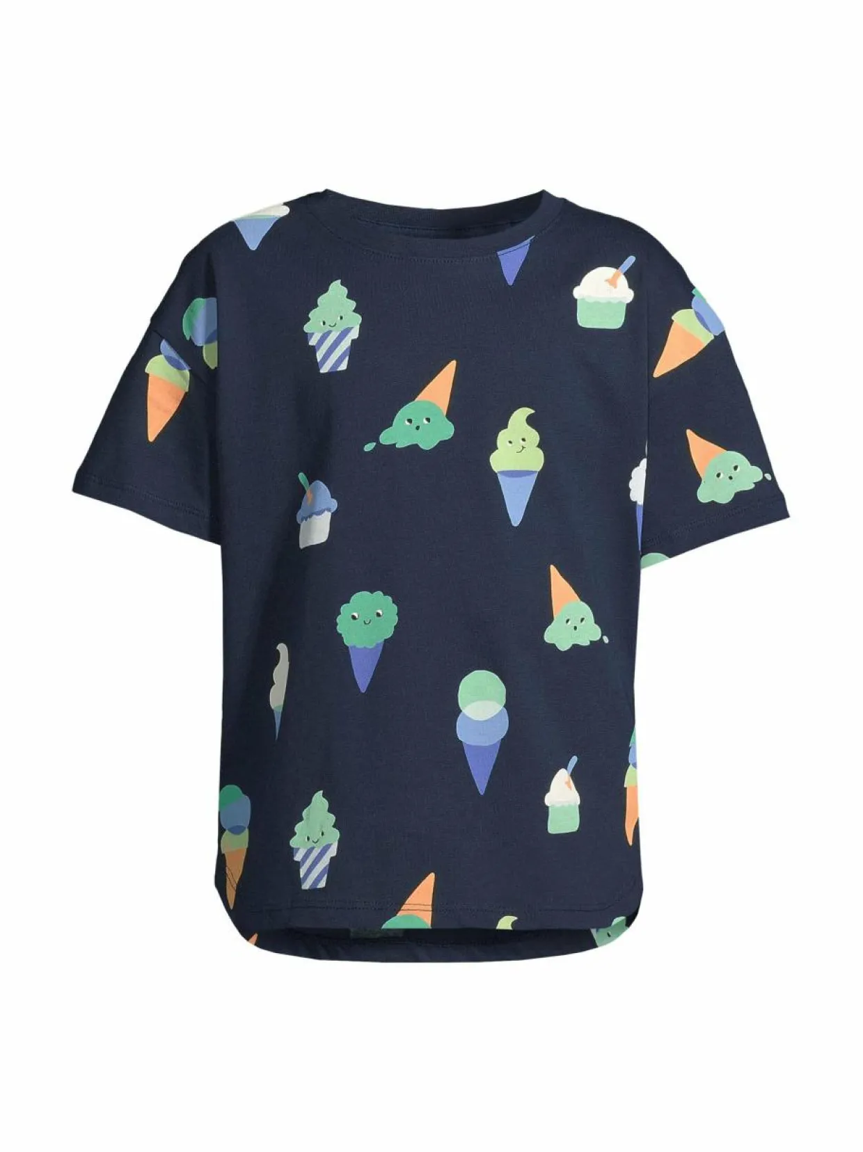 Kuviollinen t-paita pehmeää puuvillaa. Paidassa on rento istuvuus, pyöreä pääntie ja pyöristetty helma. Sisältää 80 % luomupuuvillaa ja 20 % kierrätettyä puuvillaa.