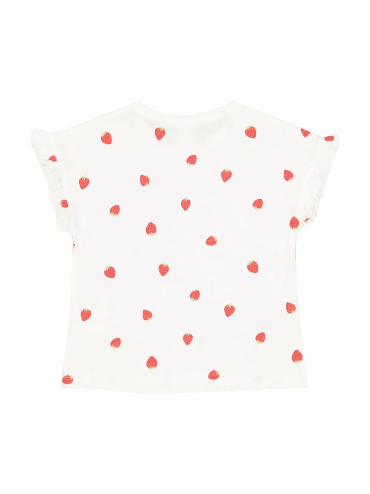Tämä pehmeästä puuvillajerseystä valmistettu t-paita on suunniteltu mukavuutta ja monikäyttöisyyttä silmällä pitäen. Söpöt röyhelöyksityiskohdat luova ilmettä. Materiaalin ansiosta tämä lyhythihainen paita tarjoaa sekä pehmeyttä että liikkuvuutta, sopien erinomaisesti arkeen ja vapaa-aikaan sekä rentoihin juhlatilanteisiin.