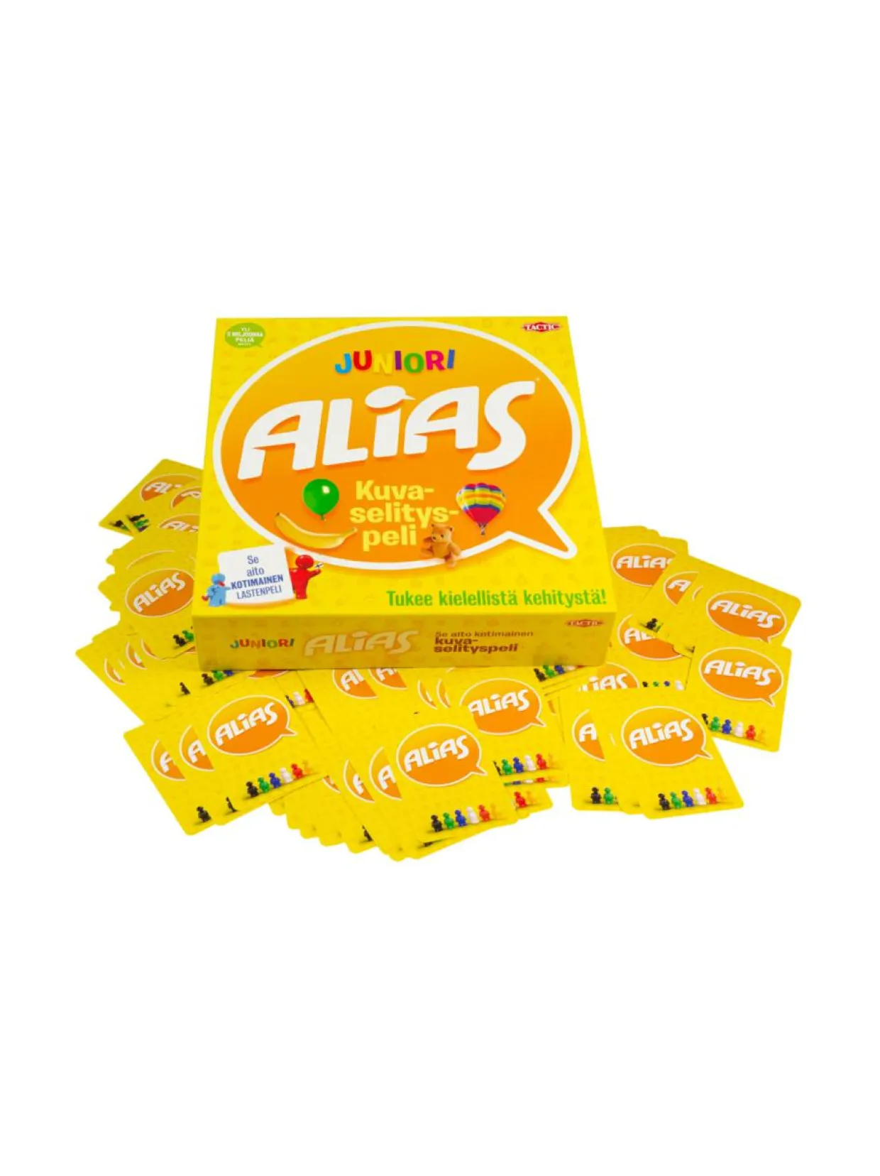 Selitä sanoja ja kuvia joukkuetovereillesi käyttämättä itse selitettävää sanaa! Voit käyttää synonyymejä, vastakohtia, vinkkejä tai vaikka ääniä sen sijaan. Peli sopii myös lapsille, jotka eivät osaa vielä lukea, sillä jokaista sanaa esittää myös kuva. Joukkueet yrittävät arvata niin monta sanaa kuin ehtivät ennen kuin aika loppuu. Juniori Alias on vauhdikas, jännittävä ja viihdyttävä koko perheen peli! Peli sisältää lapsille tuttuja sanoja ja kuvia. Ikäsuositus: 5+ v. Pelaajien määrä: 4+. Pelin kesto: 30+ min.