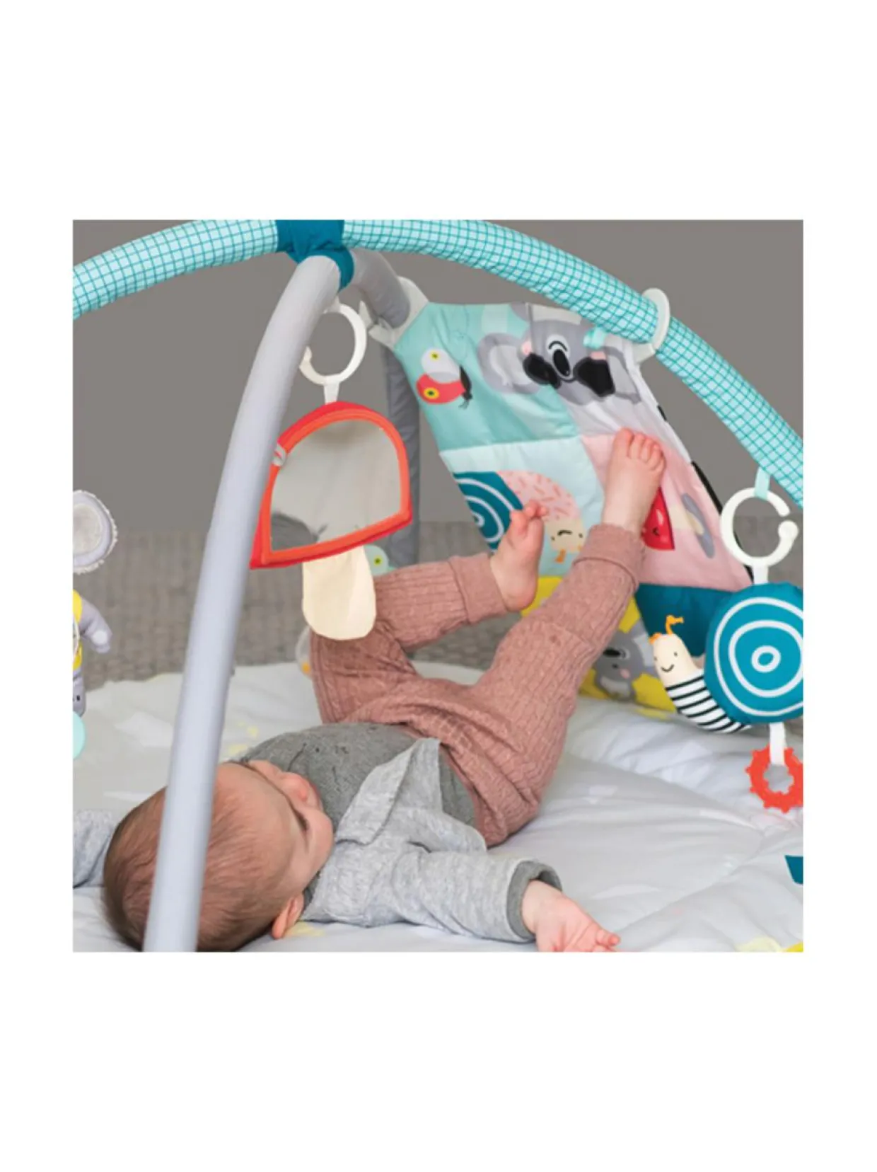 Taf Toys leikkimatto All Around Me Gym on monipuolinen ja värikäs leikkimatto, johon kuuluu leikkimatto irrotettavilla kaarilla ja lukuisia irrotettavia leluja. Näitä on muun muassa rätinäkankainen kaksipuoleinen seinäpaneeli, vauvaturvallinen peili, koala purulelulla, ja helistin. Leikkimaton mukana tulee musiikkimobile, jossa on valo. Valo muuttaa väriä musiikin tahdissa. Mobilessa on kolme melodiaa, jonka tyylin voi valita tilanteeseen sopivaksi.