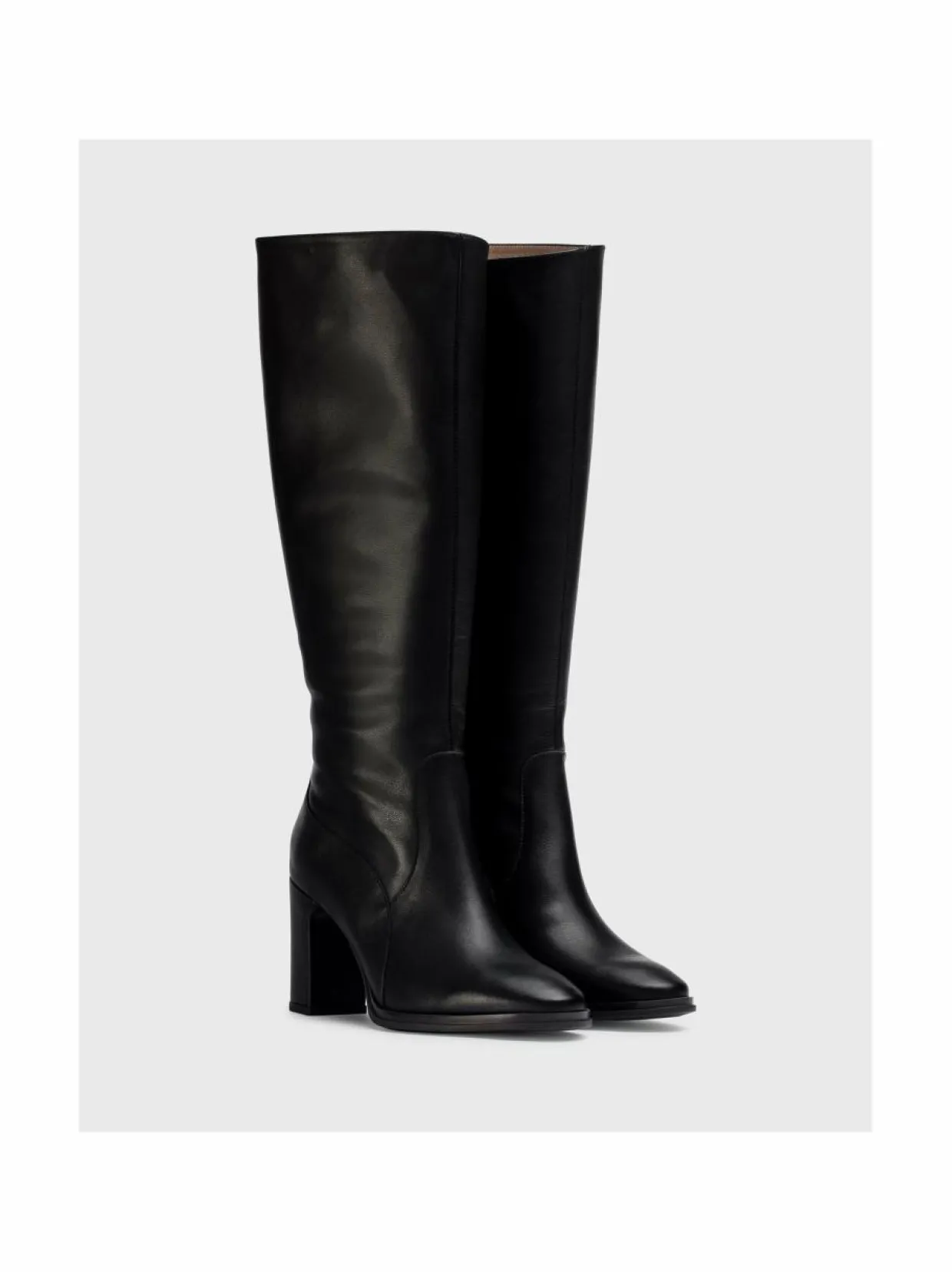 Korkeakorkoiset saappaat sileää nahkaa. Näissä ajattomissa saappaissa on naisellinen leikkaus ja terävä kärki. Sivussa oleva vetoketju takaa täydellisen istuvuuden ja helpottaa pukemista ja riisumista.