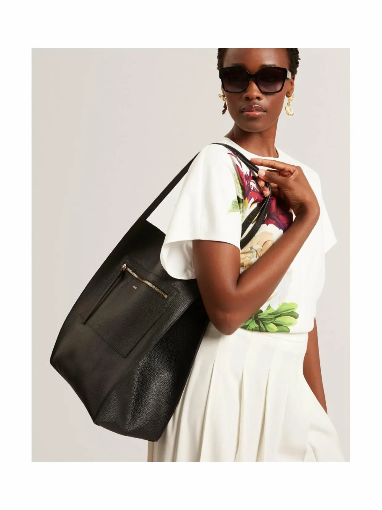 Ted Bakerin Tammila Soft Slouch Large Tote -käsilaukku on tyylikäs ja käytännöllinen lisä jokapäiväiseen tyyliisi. Laukku on valmistettu pehmeästä nahasta ja siinä on tilava päälokero, johon mahtuvat kaikki tarvittavat tavarat. Laukussa on myös pieni vetoketjullinen tasku etupuolella, jossa voit säilyttää pienempiä tavaroita. Laukun mitat ovat 35 x 12 cm.