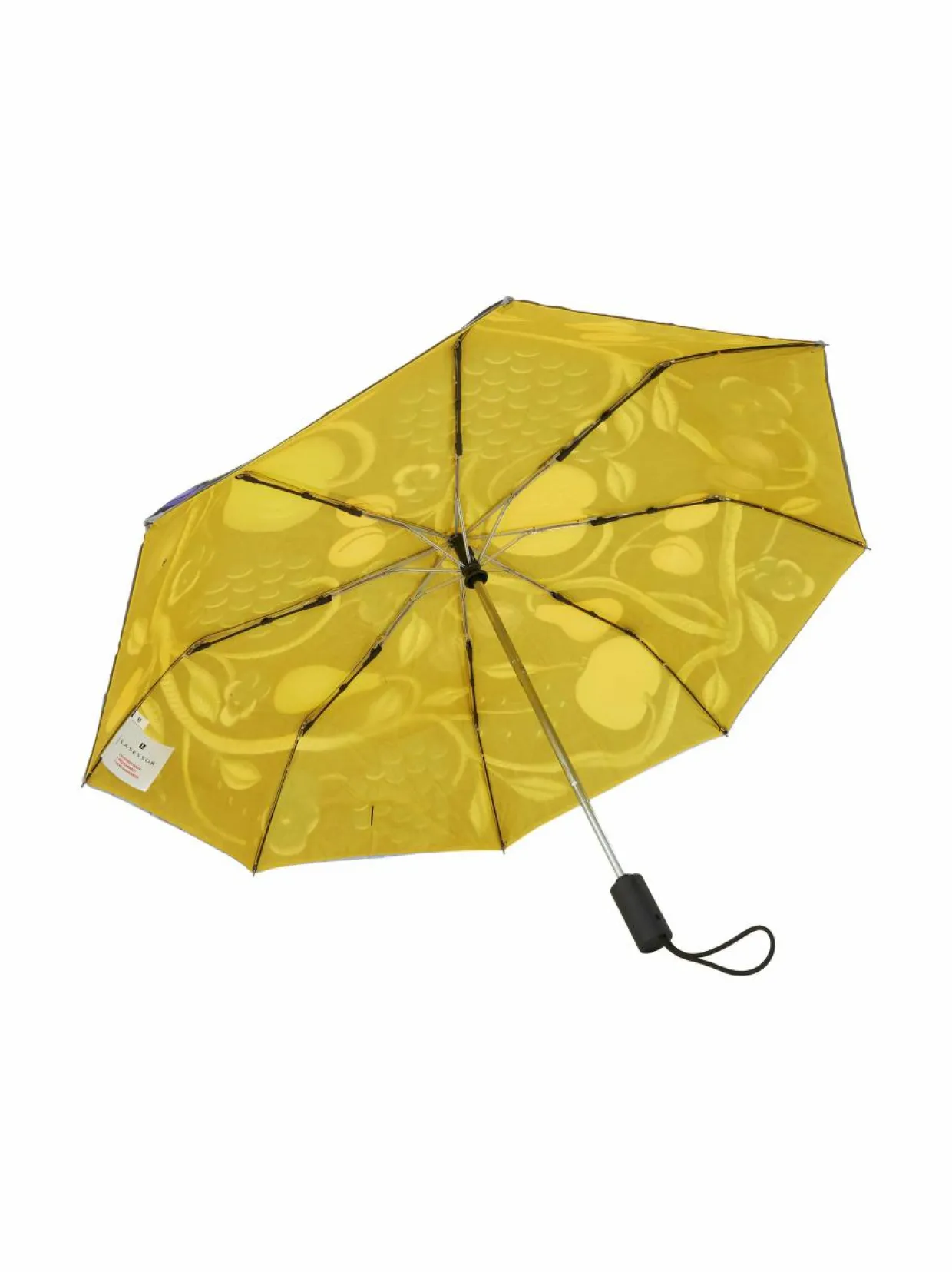 Täysautomaattinen sateenvarjo avautuu ja sulkeutuu nappia painamalla. Varjon reunaa pitkin kulkee heijastinnauha. Mukana tulee tarranauhalla sulkeutuva säilytyspussi. Kumipinnoitteisessa kahvassa on kätevä rannelenkki. Sateenvarjon pituus kokoon taitettuna on 27 cm ja halkaisija 95 cm.