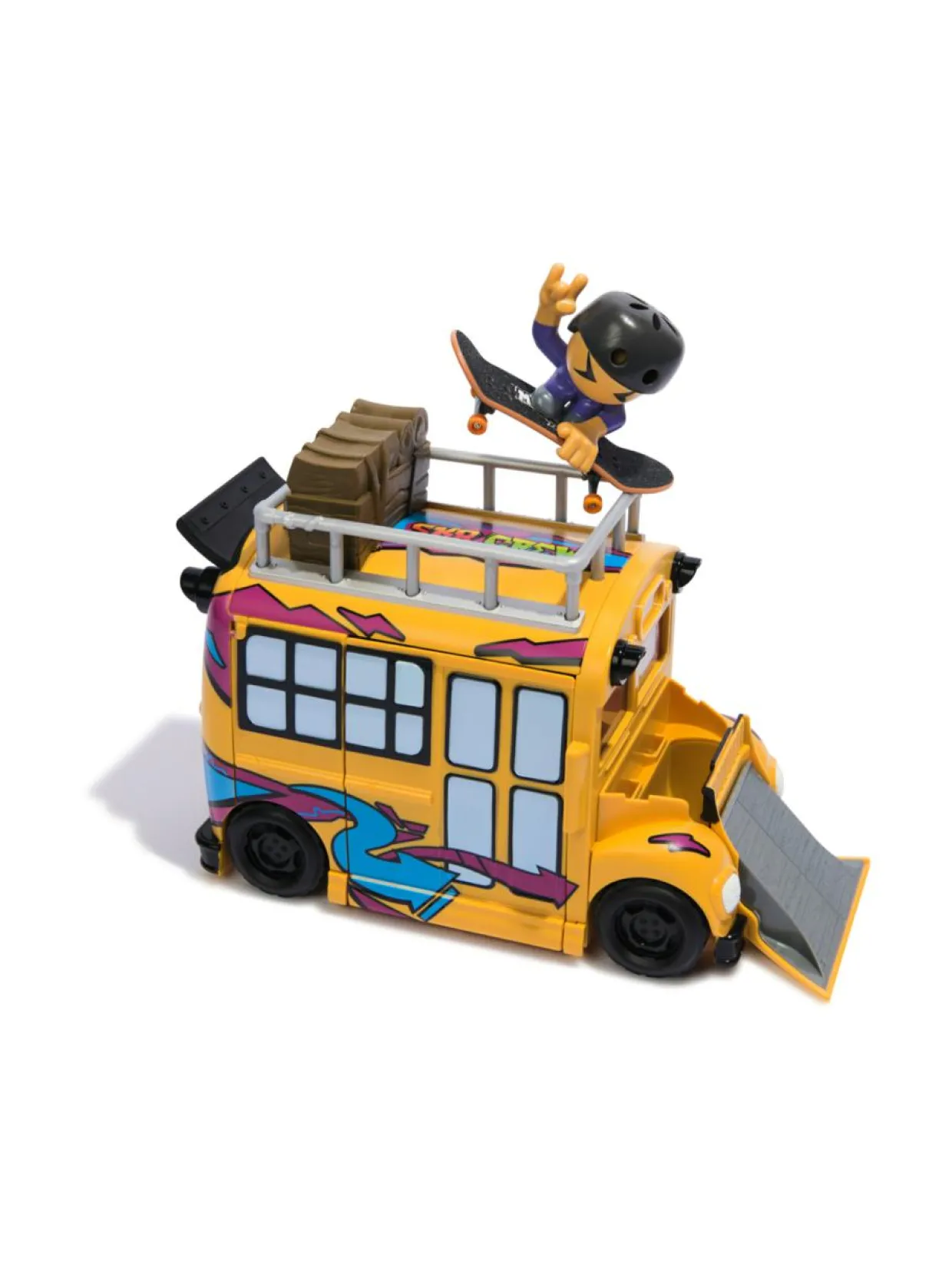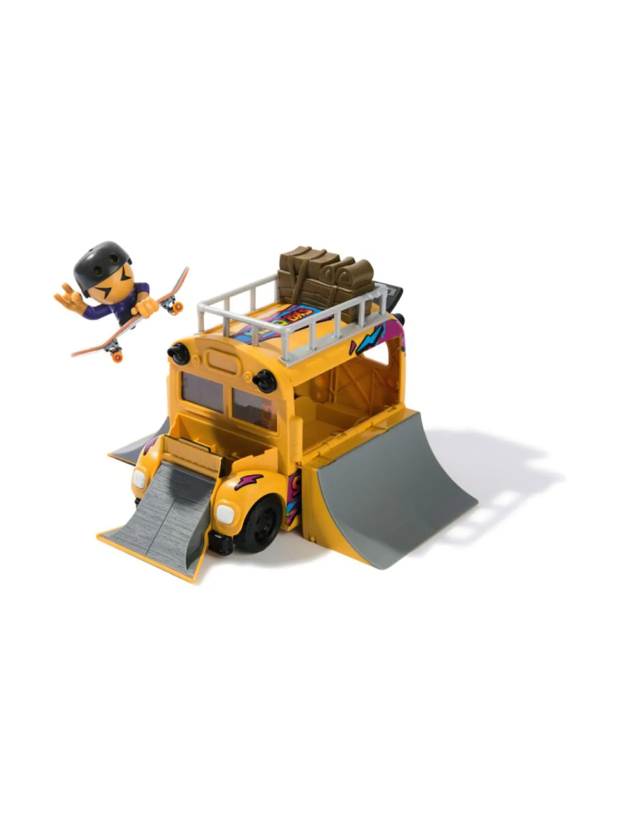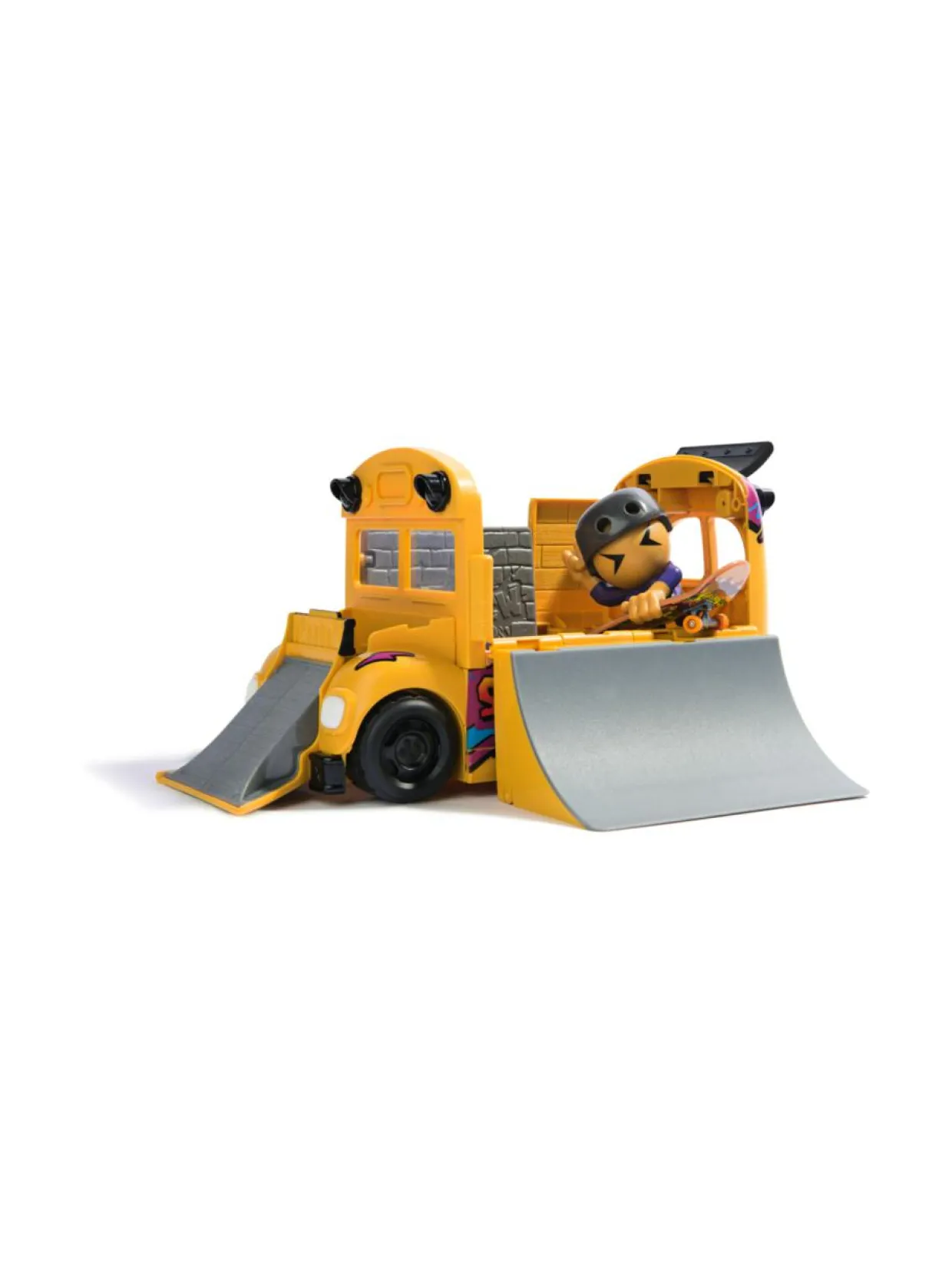 Ota Sk8 Crew Ultra Sk8 -koulubussi skeittipuistoon kanssasi ja ylläty. Siisti koulubussi muuntuu täysimittaiseksi skeittipuistoksi, jossa on ramppeja ja reileja, joissa voit tehdä kaikki Sk8 Crew -temppusi. Setti sisältää Sk8 Crew -hahmon, Tech Deck -sormiskeitin ja tarra-arkin.