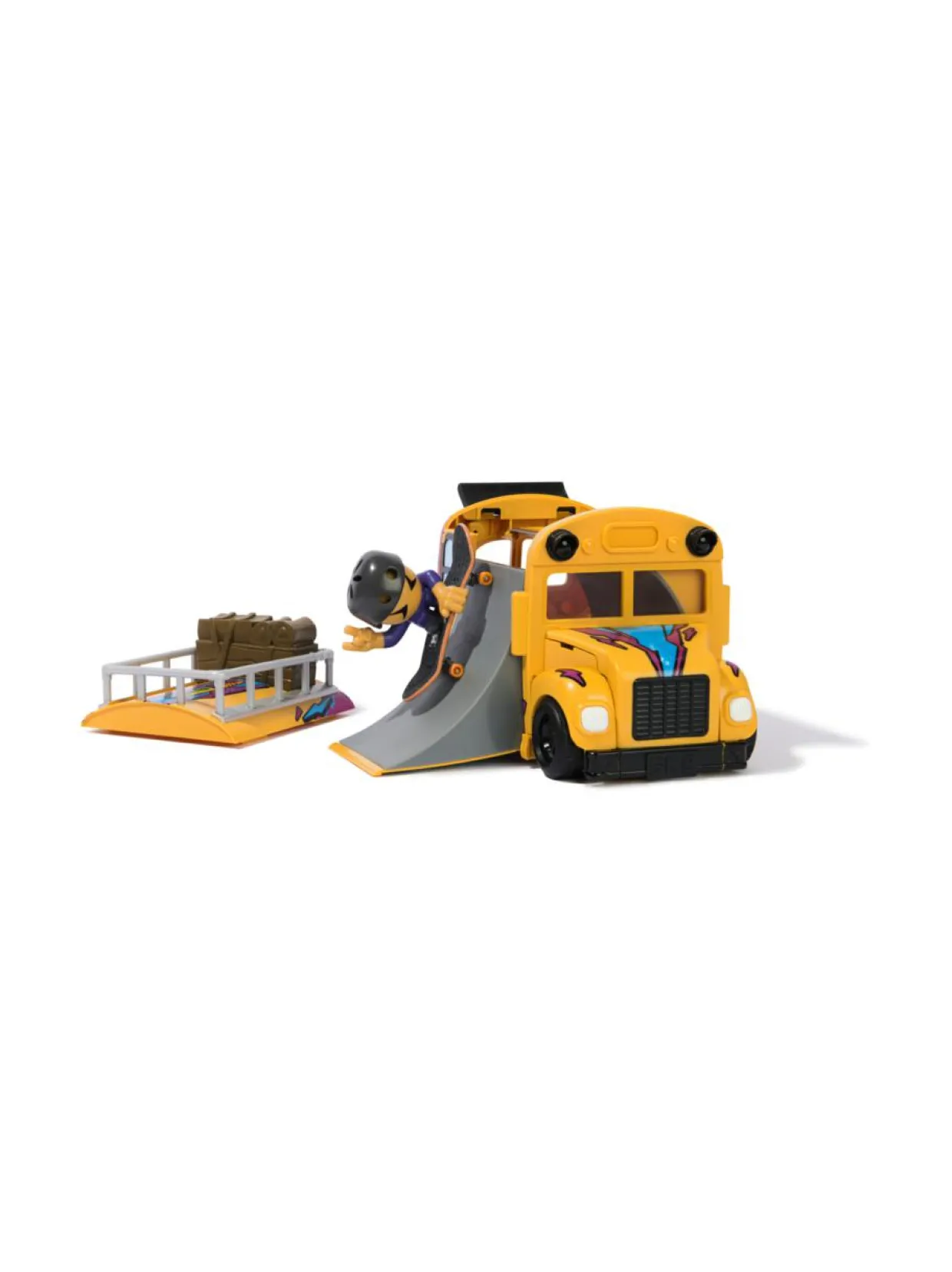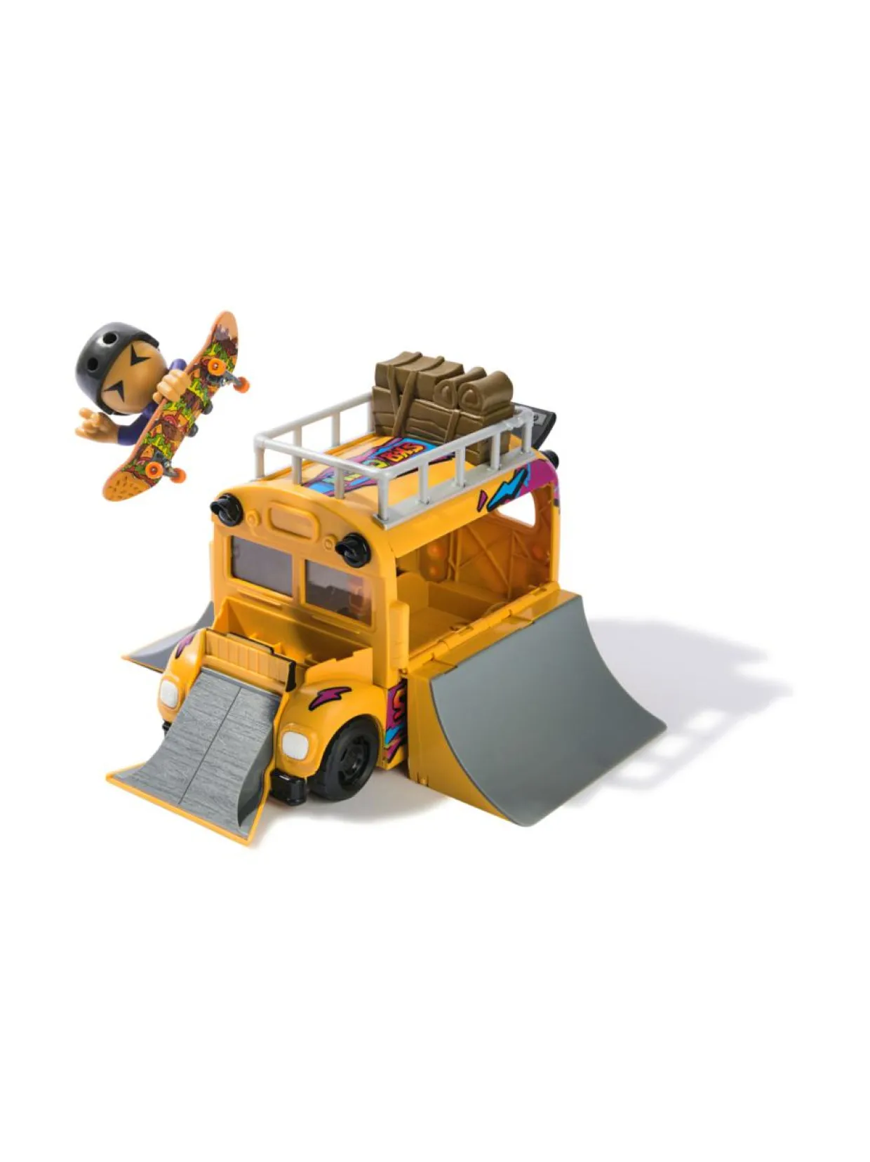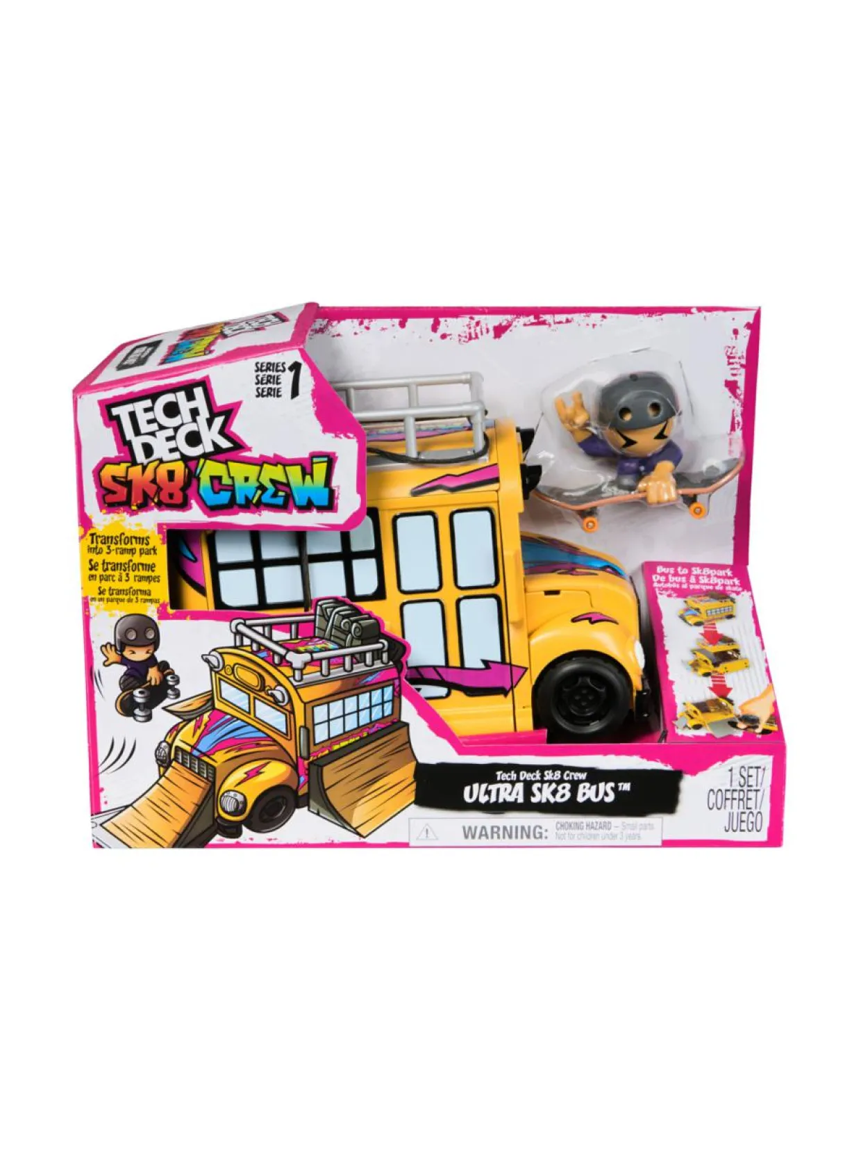 Ota Sk8 Crew Ultra Sk8 -koulubussi skeittipuistoon kanssasi ja ylläty. Siisti koulubussi muuntuu täysimittaiseksi skeittipuistoksi, jossa on ramppeja ja reileja, joissa voit tehdä kaikki Sk8 Crew -temppusi. Setti sisältää Sk8 Crew -hahmon, Tech Deck -sormiskeitin ja tarra-arkin.