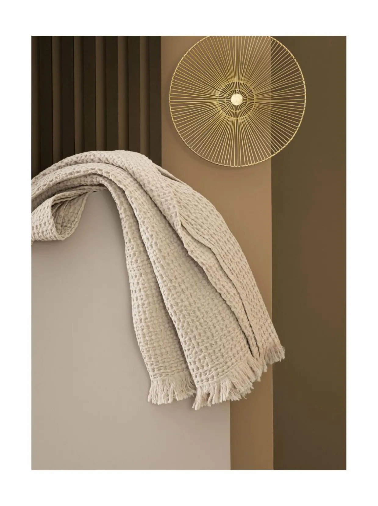 Kauniisti teksturoitu puuvillainen torkkupeitto, joka tekee siitä yksinkertaisen kauniin. Hieno hapsureuna tuo torkkupeittoon rennon viimeistellyn ilmeen. Torkkupeitoilla on helppo pehmentää huoneen ilmettä.