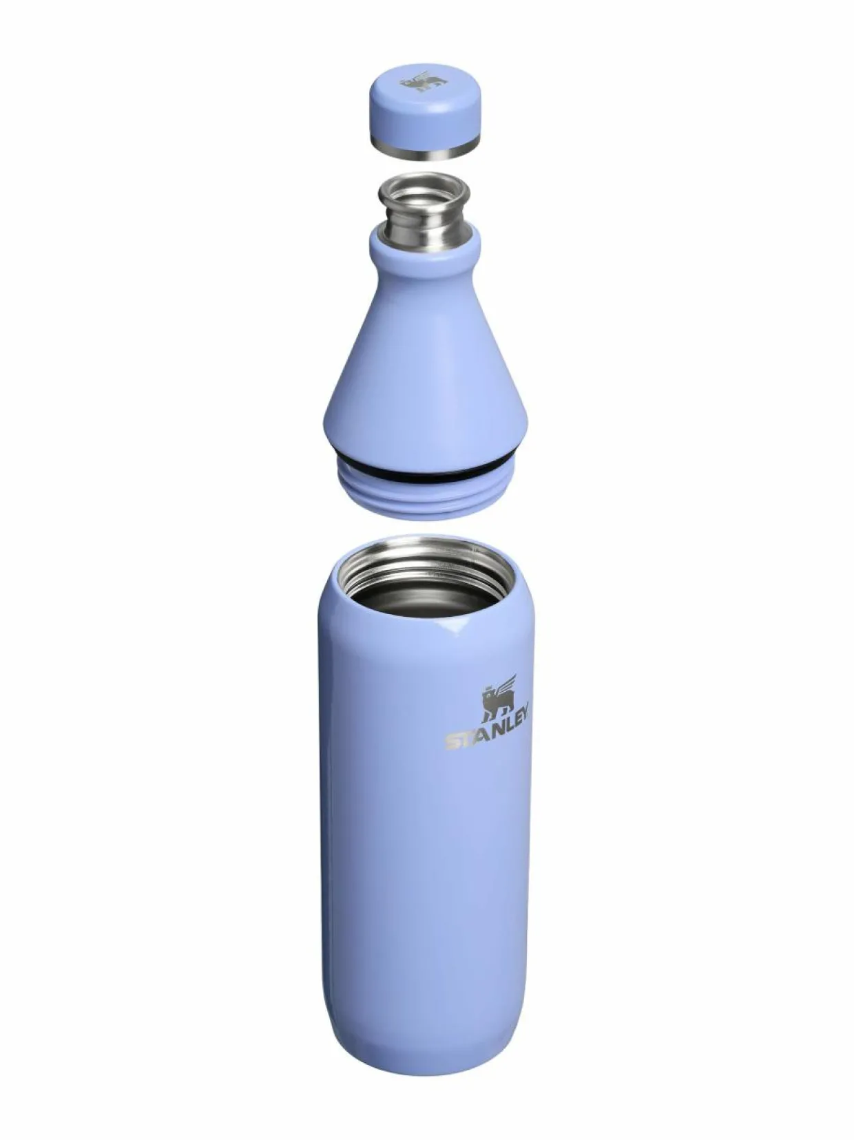 Stanley All Day Slim Bottle on klassisen juomapullon mallinen terästermospullo, joka pitää juomasi kylmänä pitkään. Siro pullo sopii useimpiin autojen mukitelineisiin, ja on myös helppo kuljettaa vaikkapa repun sivutaskussa. Termospullo voidaan avata perinteisesti kierrekorkista, tai mikäli halutaan lisätä juoman sekaan vaikkapa jääpaloja, voidaan koko pullon kaula kiertää kätevästi irti. Tuotteen valmistuksessa on käytetty kierrätettyä ruostumatonta terästä.
