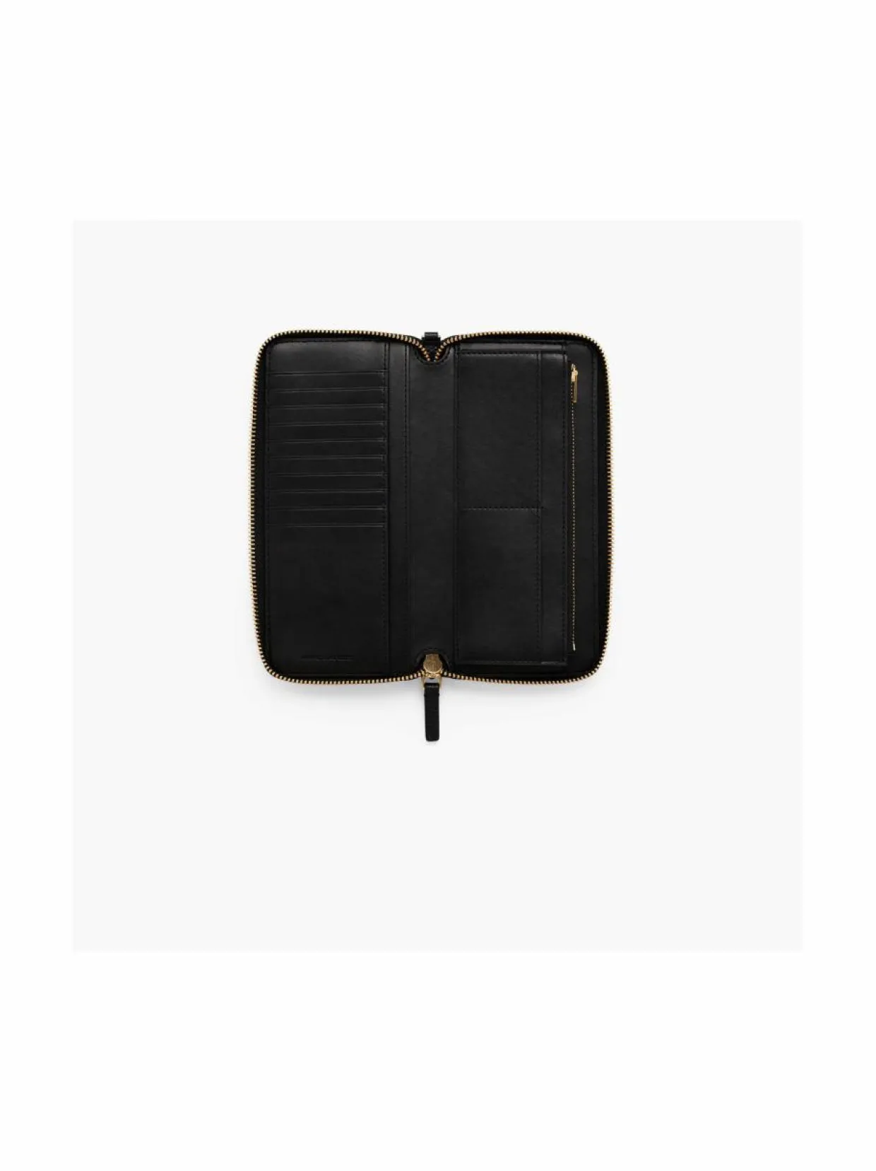 Hienosti teksturoidusta nahasta valmistettu lompakko Marc Jacobsilta. Nahkalompakossa on myös kätevä irrotettava rannehihna. Lompakko suljetaan vetoketjulla ja sisältä löydät yhteensä 12 korttipaikkaa ja yhden avotaskun.