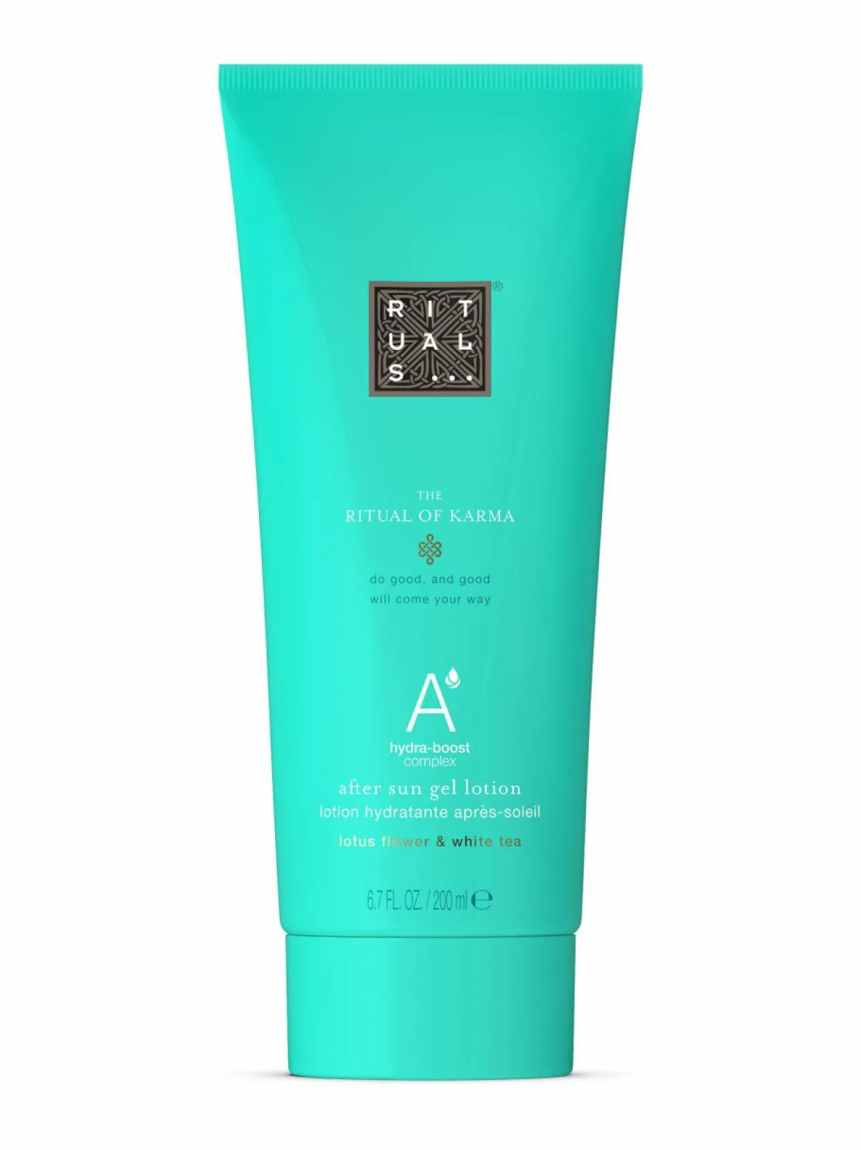 The Ritual of Karma After Sun Gel Lotion -geelivoiteen sorbettimainen koostumus viilentää, rauhoittaa ja elvyttää ihoa tehokkaasti kosteuttavan Hydra-Boost-yhdisteen ansiosta. Yhdiste sisältää aloe veraa, levää ja skvalaania, jotka auttavat kosteuttamaan ihoa, vähentämään auringon aiheuttamia näkyviä vaurioita ja tekemään ihosta pehmeämmän.Antaa erityisen nopeaa ja tehokasta helpotusta auringonpolttamalle iholle sekä pitkäkestoisia ihonhoidollisia hyötyjä, ja sopii jopa ärtyneelle ja herkälle iholle. Imeytyy nopeasti ja sisältää lootuksen kukkaa ja valkoista teetä.