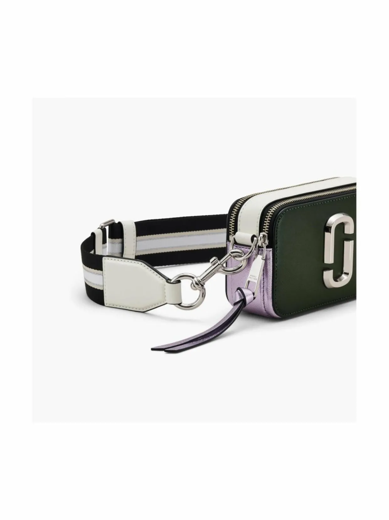 Marc Jacobsin ikoninen The Snapshot -olkalaukku on tarpeeksi suuri tärkeimmille tavaroillesi, mutta silti tarpeeksi pieni kannettavaksi minne tahansa. The Snapshot erottuu väriblokkauksellaan sekä tunnusomaisella J Marc -metallikoristeellaan. Materiaali on polyuretaanipinnoitteista saffiano-nahkaa.