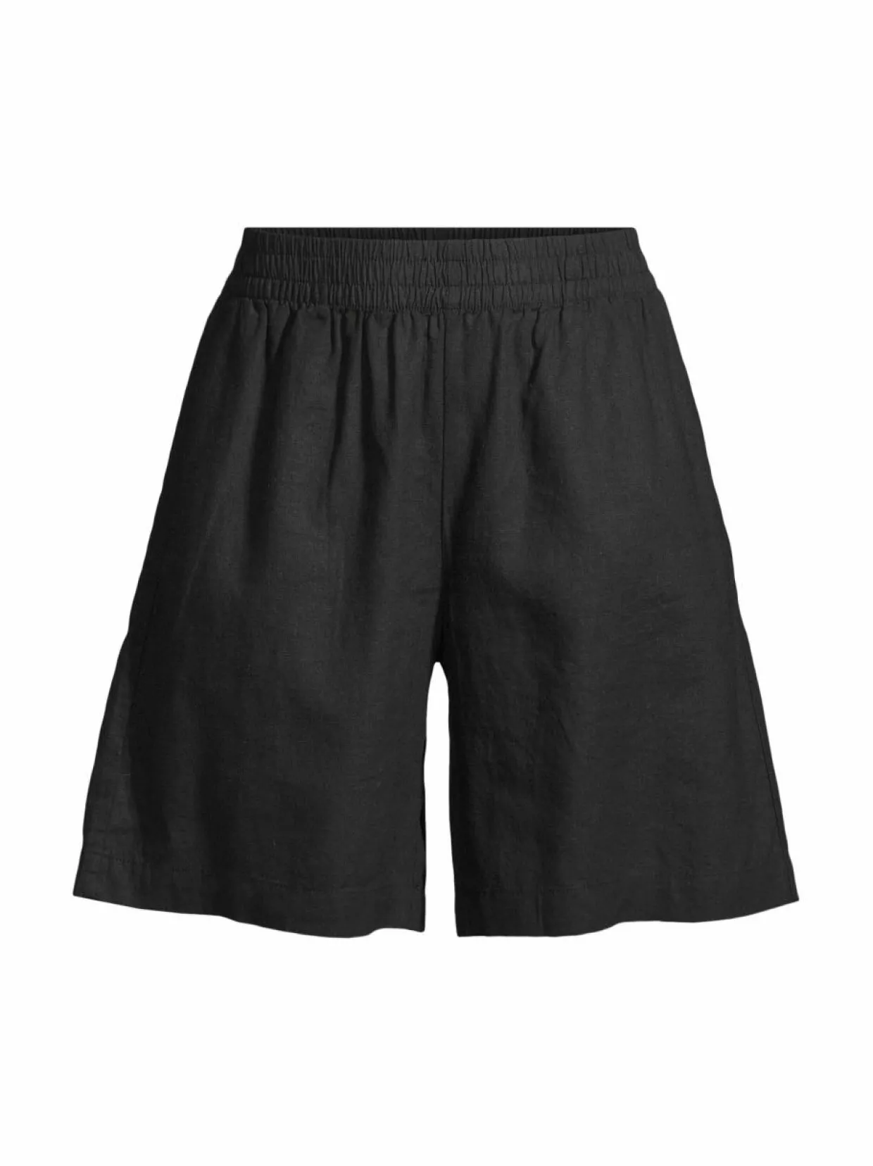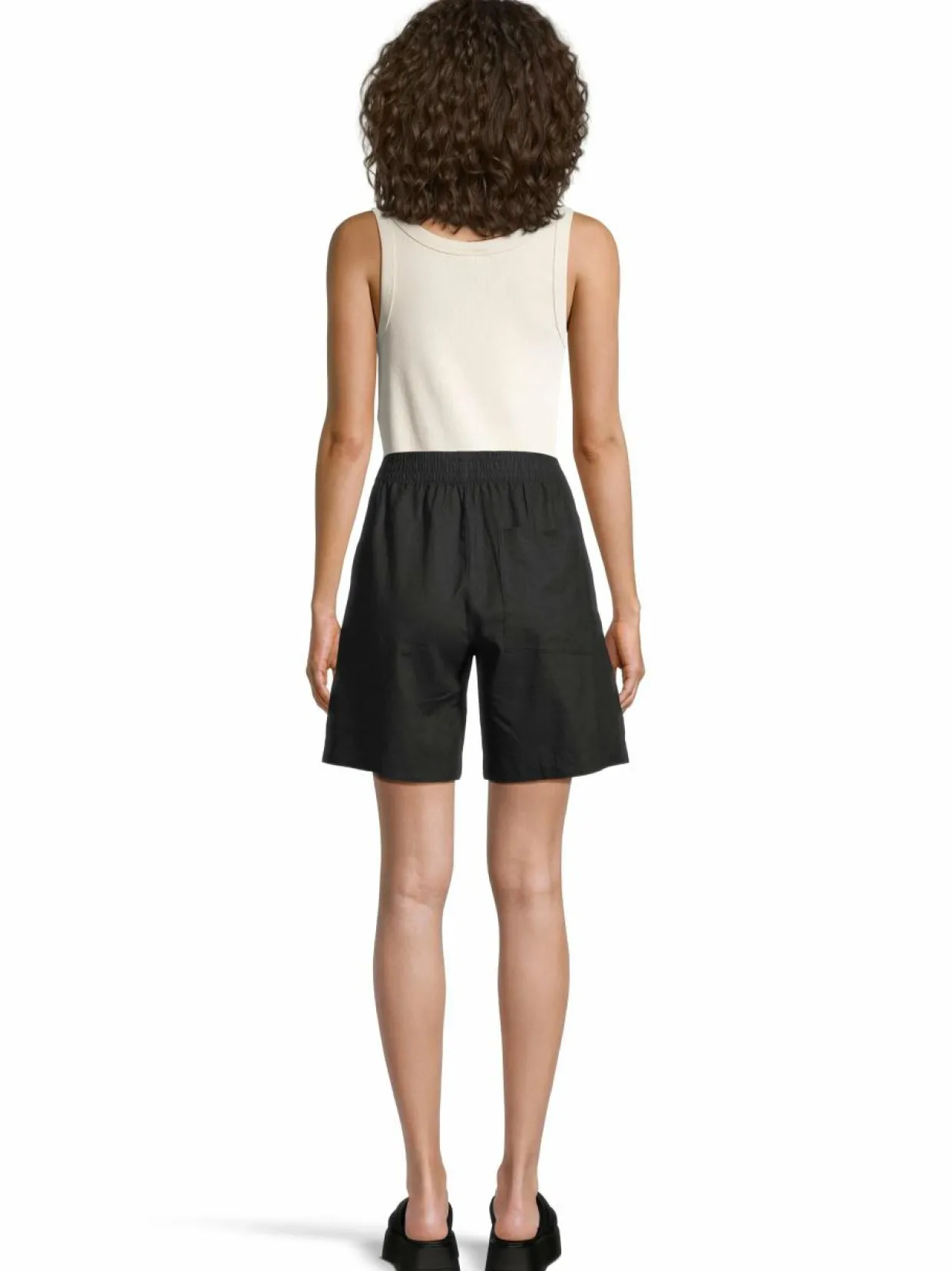 Mukavan leveälahkeiset ja korkeavyötäröiset shortsit Stockmannin omalta naisten mallistolta NOOM. Vyötärölinjan joustavuus lisää shortseille käyttömukavuutta. Taskut sivuilla ja yksi avotasku takana. Materiaalina on käytetty hengittävää ja ihoystävällistä pellava-viskoosia.