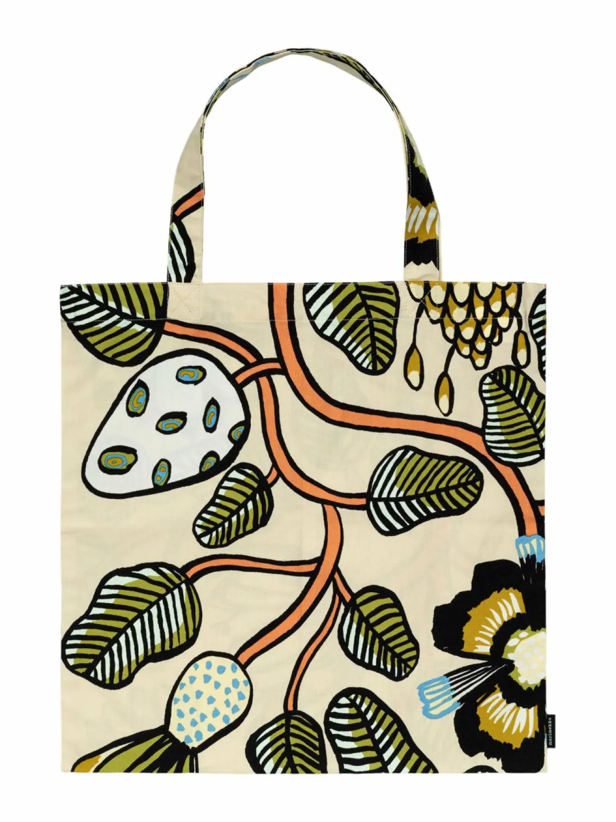 Tuotenumero173020997 Materiaali100 % puuvilla Väri820 SAND, WARM OR, GREEN Koko43 x 44 cm Avainsanatkassi, laukku, kangaskassi, ostoskassi, Marimekko, laukku, shopperi