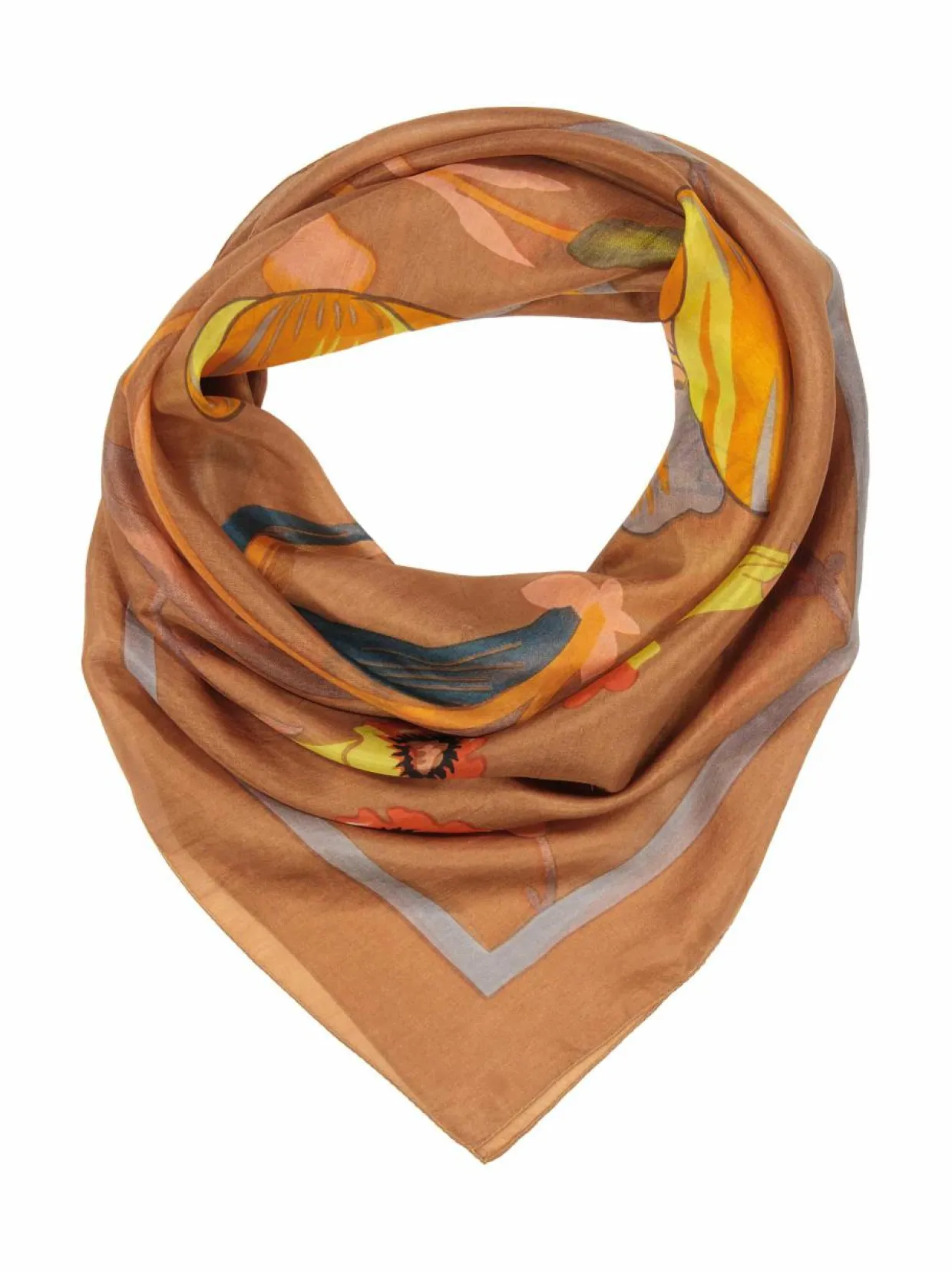 Tuotenumero170230405 Materiaali100 % silkki Hoito-ohjeetPesu käsin ValmistusmaaIntia VäriBROWN COMB. 1 Koko100 x 100 cm Avainsanathuivi, neliöhuivi, kukallinen huivi, silkki, kukkahuivi
