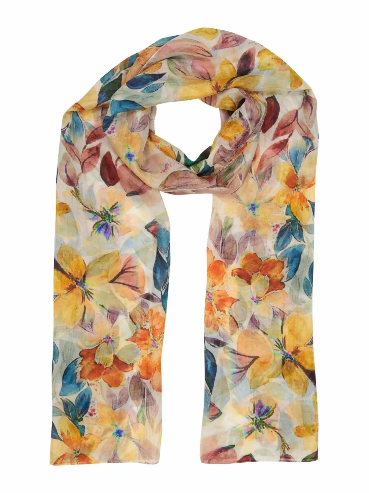 Kevyt silkihuivi on tyylikäs ja ylellinen asuste, joka lisää ripauksen eleganssia asuusi. Huivia tyylittää kukkakuvioinen printti. Silkin pehmeä ja kevyt materiaali tuntuu miellyttävältä ihoa vasten.