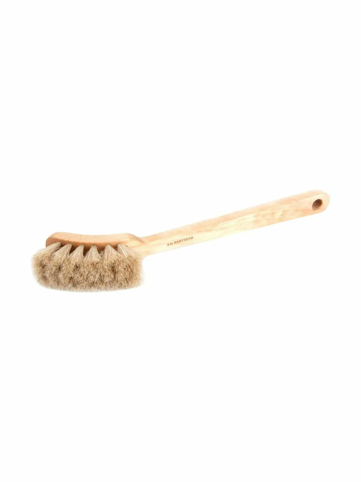 Koivusta valmistetussa tiskiharjassa on hevosenjouhesta tehty harjasosio, joka kapean muotonsa ansiosta sopii mainiosti lasien pesuun.