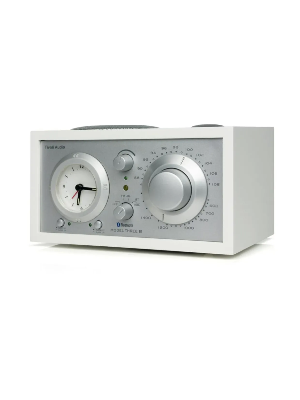 Model Three BT tuo analogisen Model One -mallin tyylin ja äänen täydellisesti makuuhuoneeseen lisäämällä klassisen analogisen kellon. Kello on suunniteltu helppokäyttöiseksi, ja se on kevyesti valaistu, jotta näet sen myös yöllä.