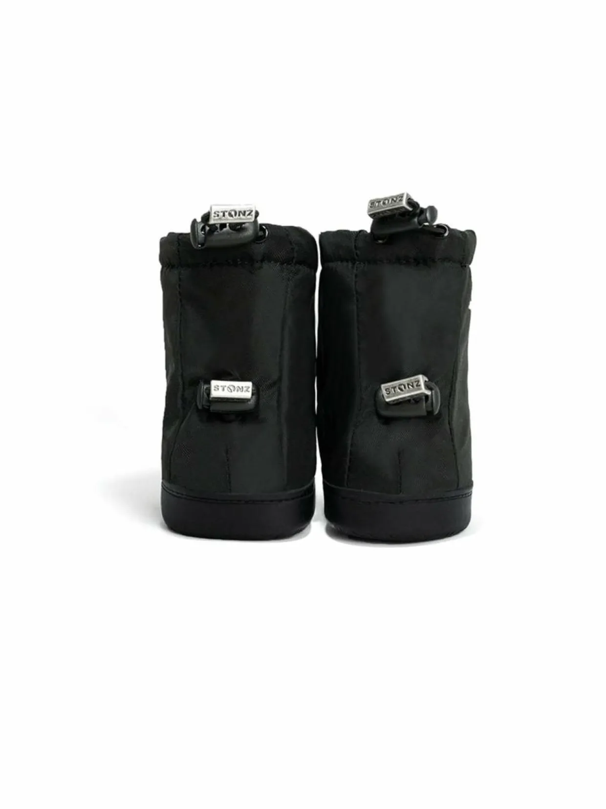 Palkitut Stonz Booties-jalkineet on valmistettu vettähylkivästä ja tuulenpitävästä 600D nylonkankaasta ja niissä on pehmoinen fleecevuori. Kahdella kuminauhakiinnikkeellä varmistetaan tossun miellyttävä istuvuus ja jalassa pysyminen.