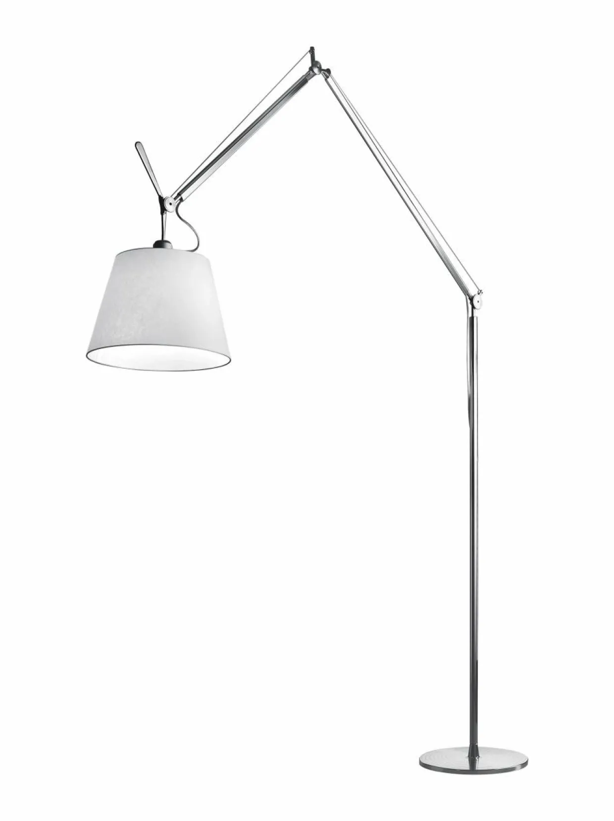 Michele De Lucchin ja Giancarlo Fassinan suunnittelema Tolomeo Mega on näyttävä, mutta silti kevyenoloinen lattiavalaisin. Valon suuntaa voi säätää 360°.