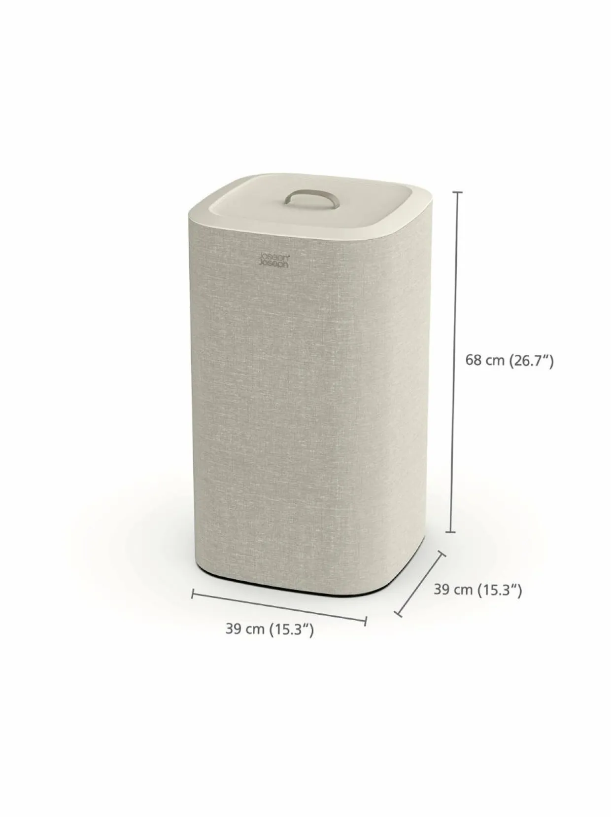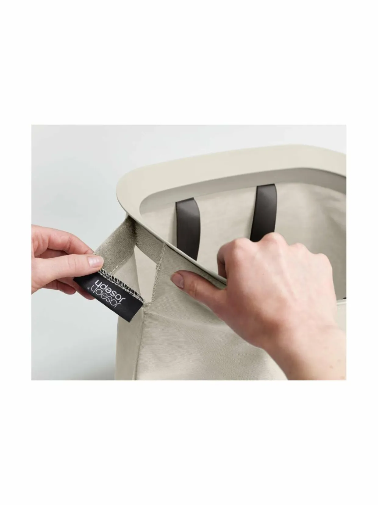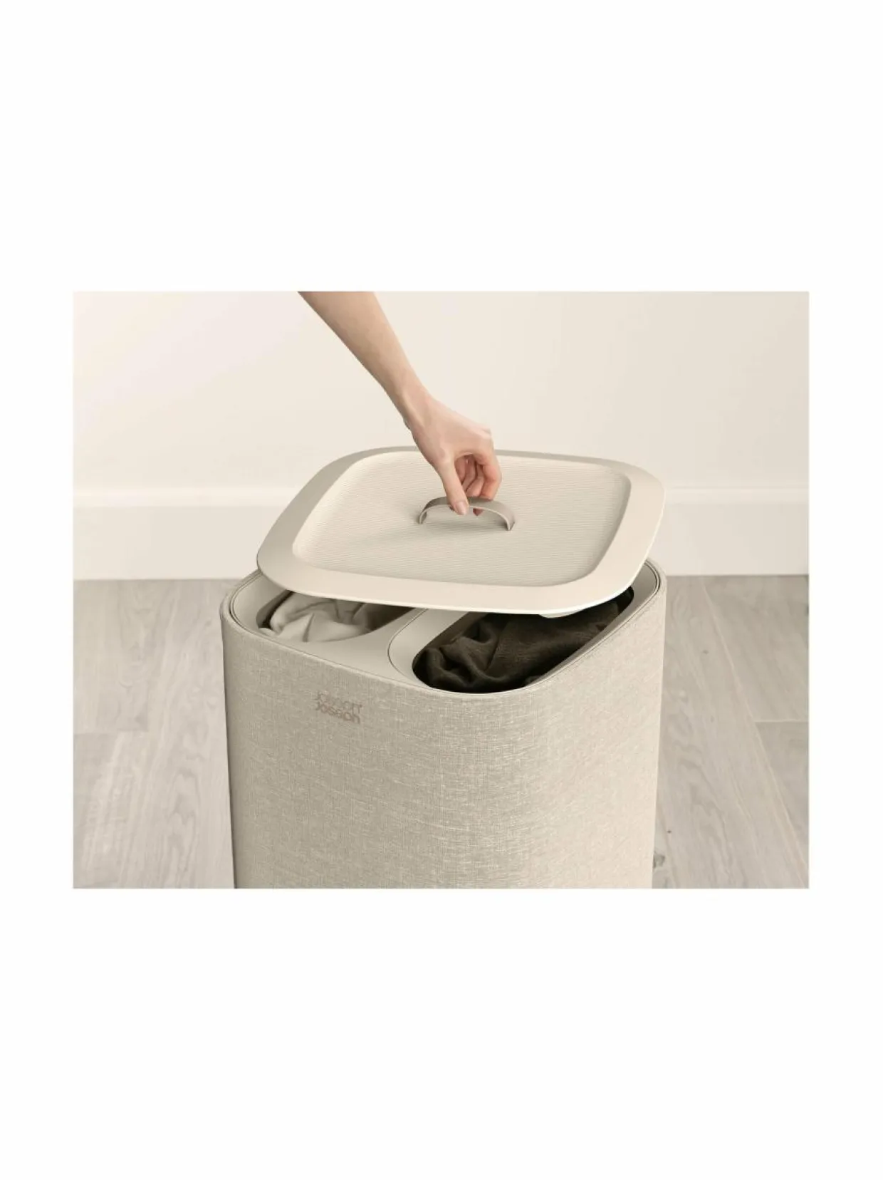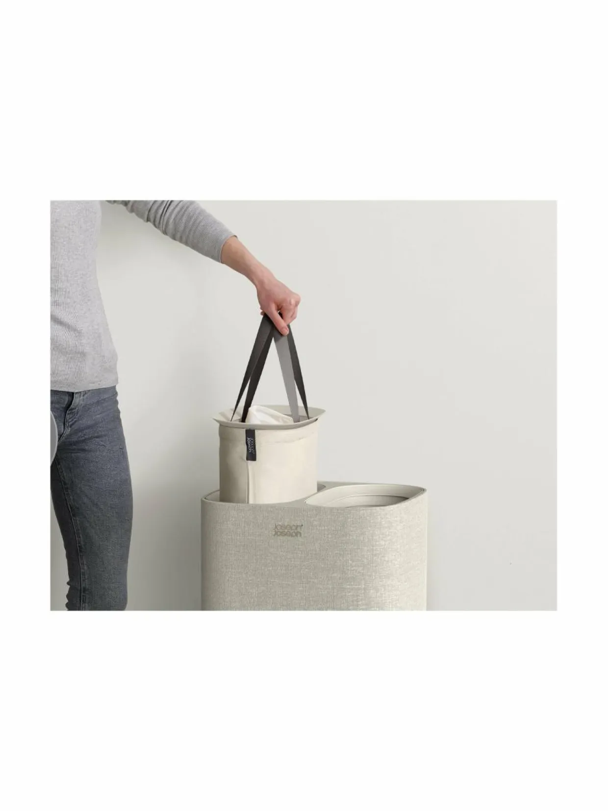 Tota sopii moneen tilaan ja sisustukseen. Tota- erotteleva pyykkikori helpottaa arkea erottelemalla vaalean ja tumman värisen pyykin omiin 30 litran lokeroihinsa. Pyykit kulkeutuvat kätevästi pyykkitupaan olalla kannettavista kantokahvoista. Pussin pohjassa oleva käytännöllinen apukahva helpottaa tyhjennystä. Tyhjät pyykkipussit asettuvat takaisin omiin lokeroihinsa vaivatta.