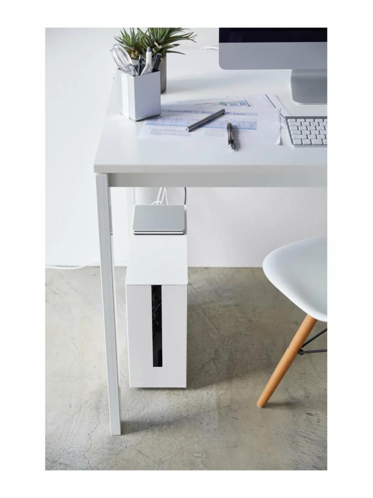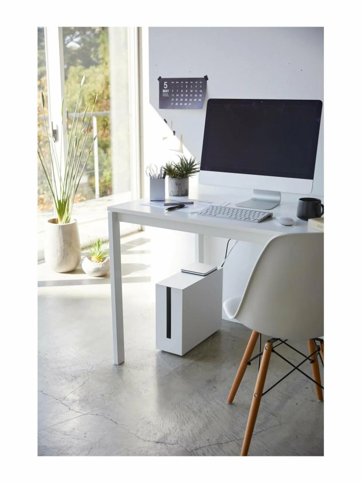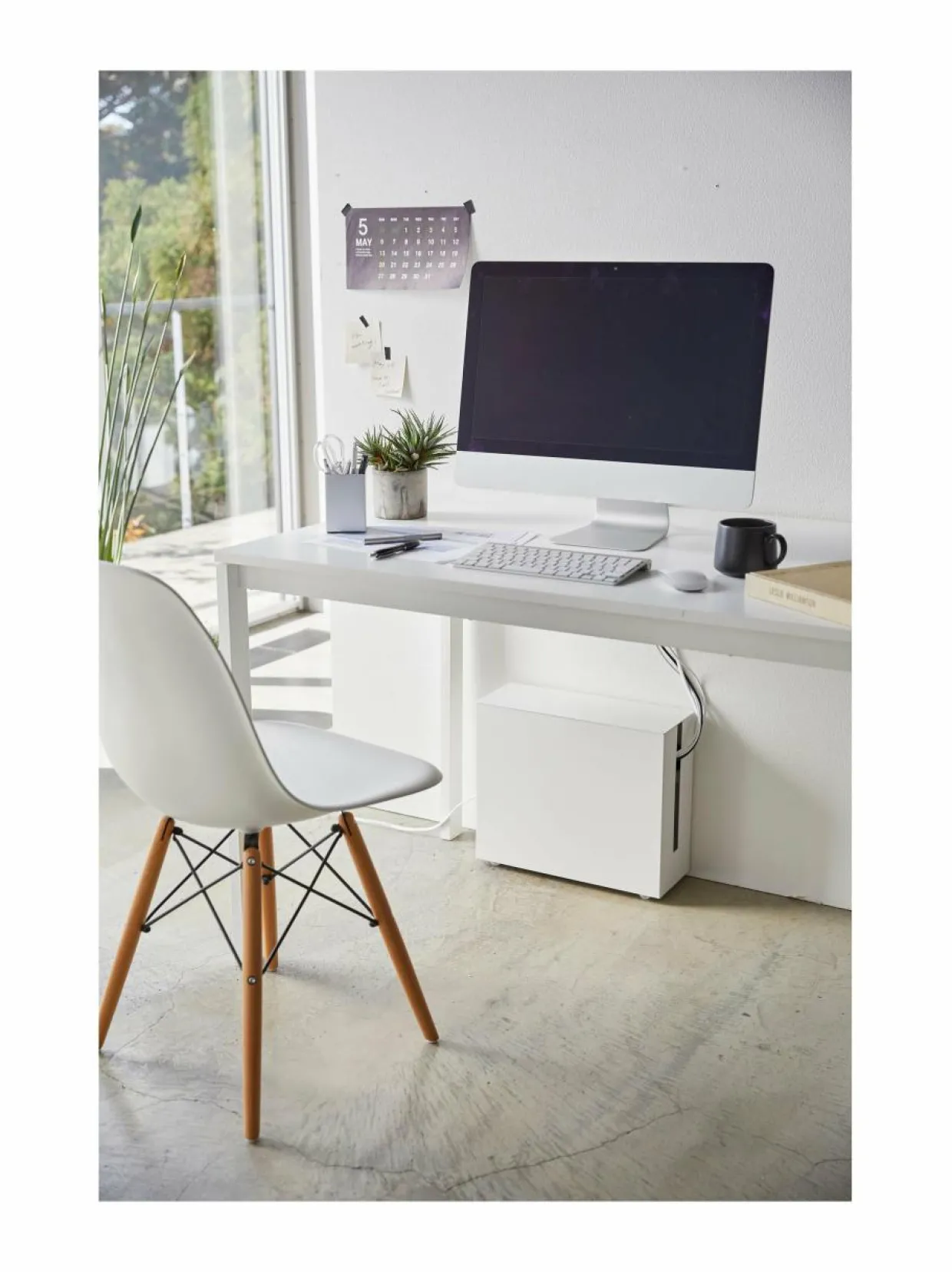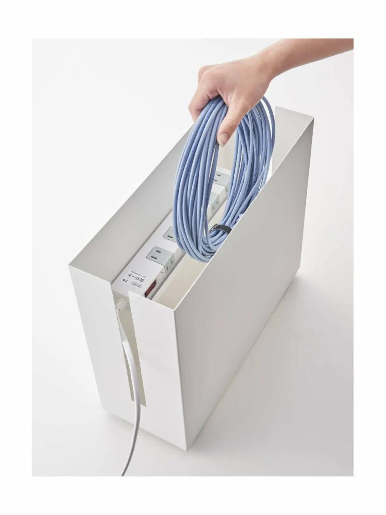 Tyylikäs Tower-sarjan johtolaatikko auttaa kesyttämään työpöydän alla vallitsevan johtokaaoksen. Tilavan, jauhemaalatusta teräksestä valmistetun laatikon sisällä esimerkiksi sähköjohdot, reitittimet ja ulkoiset kovalevyt ovat siististi piilossa. Sisällä on hylly, johon voi laittaa esimerkiksi jatkojohdon. Rei´itetty pohja ehkäisee ylikuumenemista, ja pyörät helpottavat laatikon liikuttelua esimerkiksi imuroitaessa. Suunniteltu Japanissa.