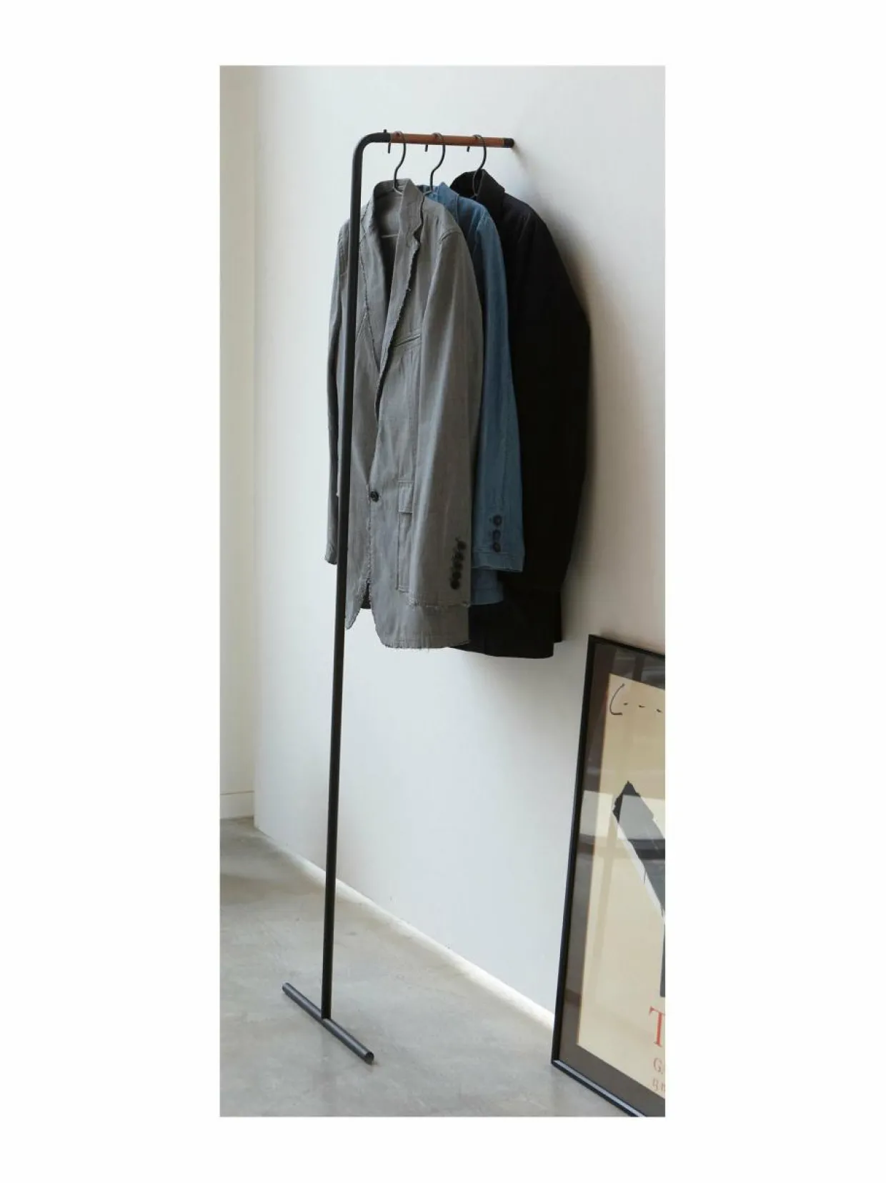 Yamazakin Tower-sarjan Slim-vaatetelinettä ei tarvitse kiinnittää ruuveilla, vaan se yksinkertaisesti asetetaan nojaamaan seinää vasten. Näin ollen se on erinomainen vaihtoehto esimerkiksi vuokra-asuntoon, tai jos muuten halutaan välttää reikien poraamista seinään. Tyylikäs teline on valmistettu mattapintaiseksi maalatusta teräksestä, johon saarni tuo ripauksen lämpöä. Vaatetelineeseen voi arkiaamujen helpottamiseksi ripustaa valmiiksi vaikkapa seuraavan päivän asukokonaisuuden. Tuote on koottava. Suunniteltu Japanissa.