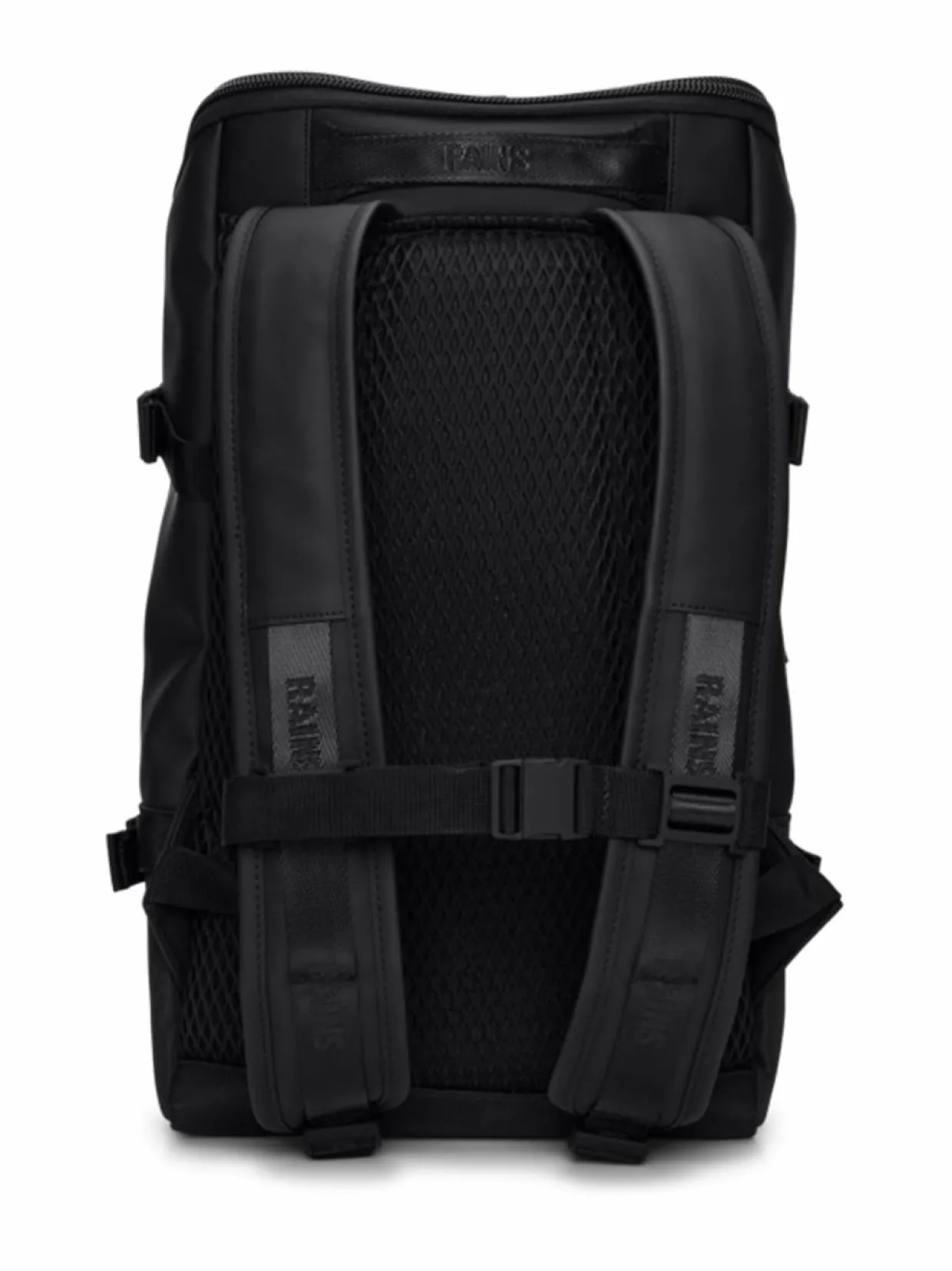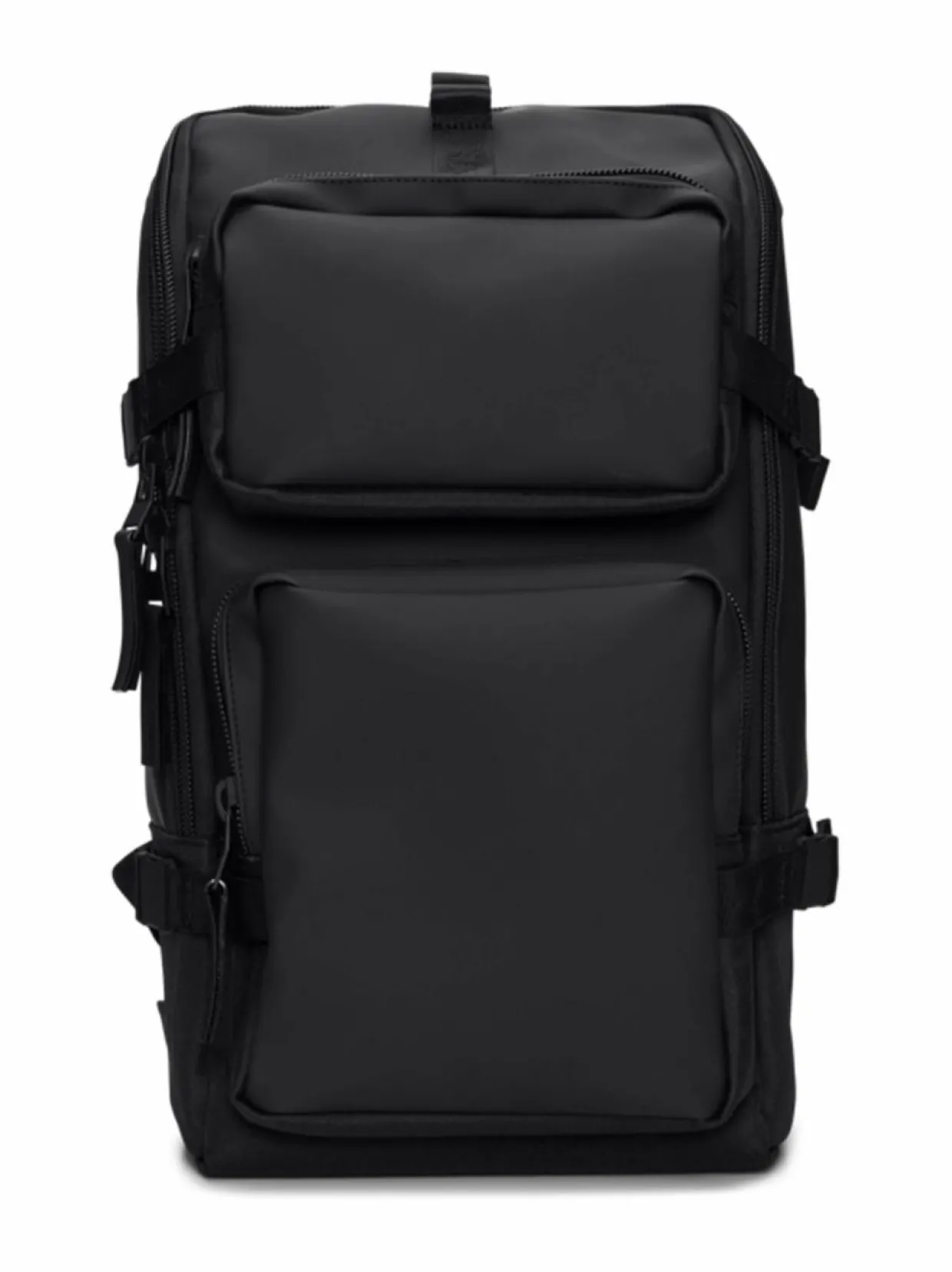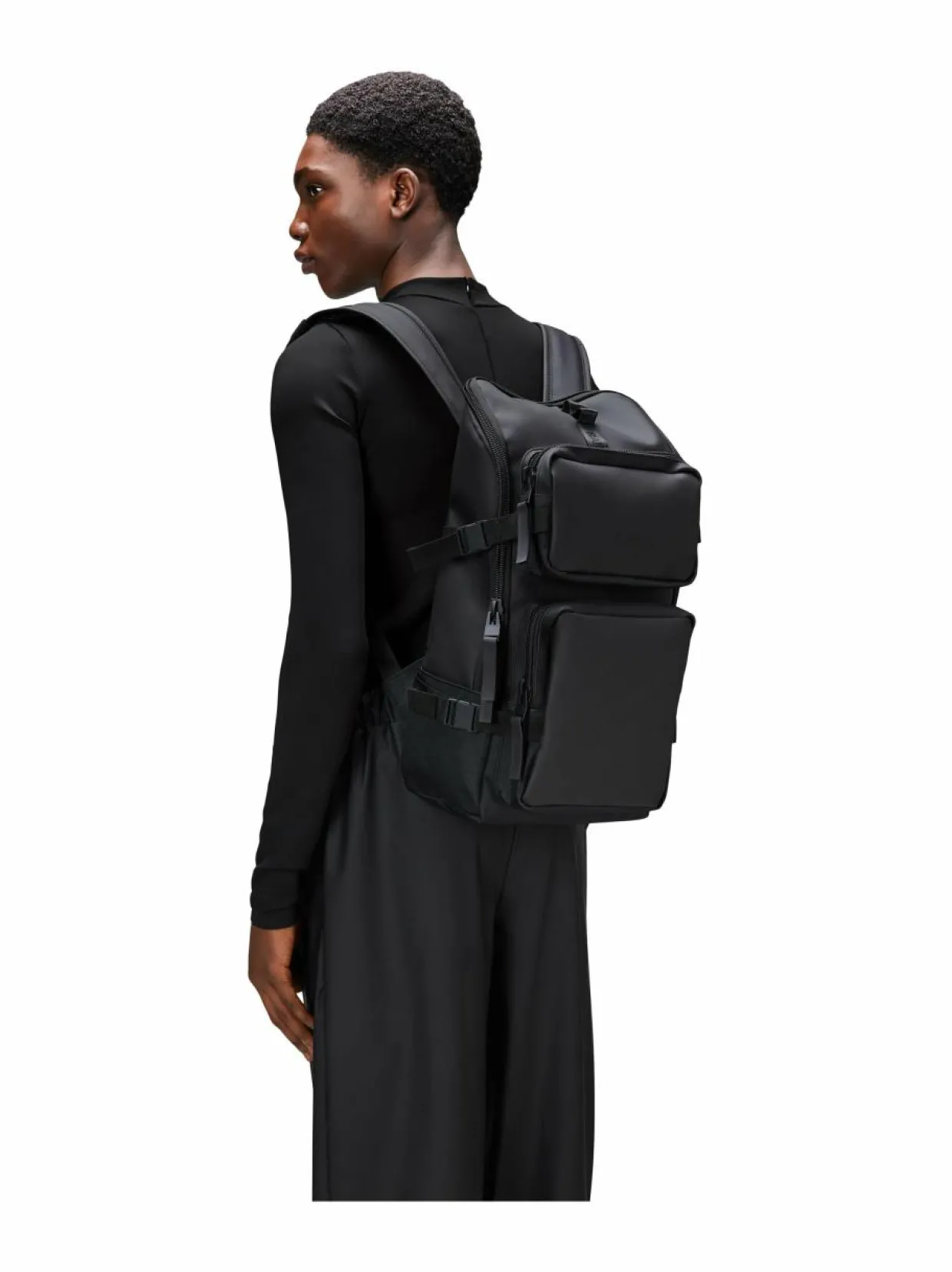 Trail Cargo tarjoaa paljon ominaisuuksia ja toiminnallisia yksityiskohtia. Tämä vedenpitävä reppu sisältää säädettävät puristushihnat, kaksi neliönmuotoista ja vetoketjullista etutaskua, tarjoten runsaasti säilytystilaa, sekä kiinnityspisteitä ulkoisten varusteiden kuljettamiseen. Suunnittelu sisältää etuosan kautta avautuvan vetoketjullisen pääosion sekä pehmustetun sisätaskun, joka on tarpeeksi iso 13 tuuman kannettavalle tietokoneelle. Trail Cargo -reppu on valmistettu Rainsin tunnusomaisesta vedenpitävästä PU-kankaasta, joka on suunniteltu kestävyyttä, vedenpitävyyttä ja pehmeää tuntumaa ajatellen.