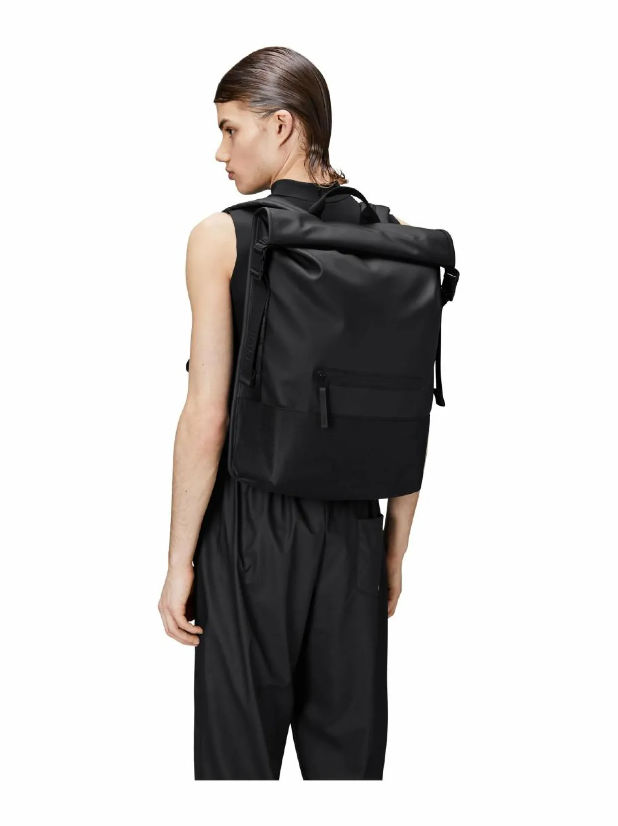 Trail Rolltop -reppu on kaupungin perusvaruste, täydellinen esimerkiksi pyörällä tai kävellen tehtäville työmatkoille. Tyylin viimeistelee ylhäältä rullattava suuaukko. Tämä vedenpitävä laukku sisältää myös sisäisen läppäritaskun, vetoketjullisen etutaskun sekä pehmustetun takapaneelin. Trail Rolltop -reppu on valmistettu Rainsin tunnusomaisesta vedenpitävästä PU-kankaasta, joka on suunniteltu kantokykyä, kestävyyttä ja pehmeää tuntumaa ajatellen.