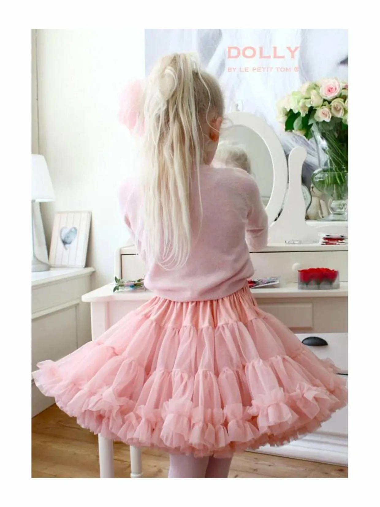 Ihastuttava tyllihame pikkuprinsessoille. Vyötärölinja on joustava ja siinä on satiininauha, jota voit solmia kauniiksi rusetiksi. Dolly by Le Petit Tom on brändi, jonka mekot ovat unenomaisia ja saavat inspiraationsa baletin tutuhameista.