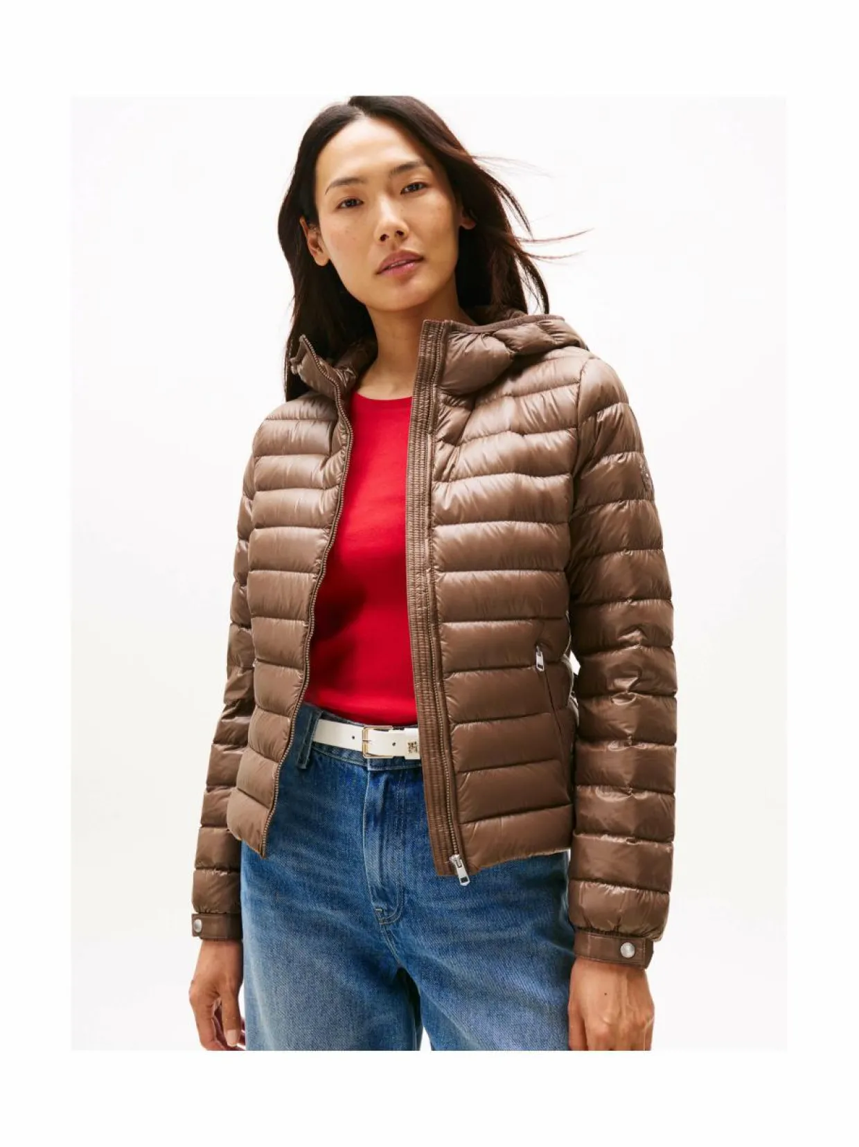 Materiaali100 % polyamidi Hoito-ohjeetPese tarvittaessa hellävaraisesti VäriGTO HOT COCO Avainsanattakki, kevyt untuvatakki, hupullinen untuvatakki, ulkotakki, talvitakki, Tommy Hilfiger