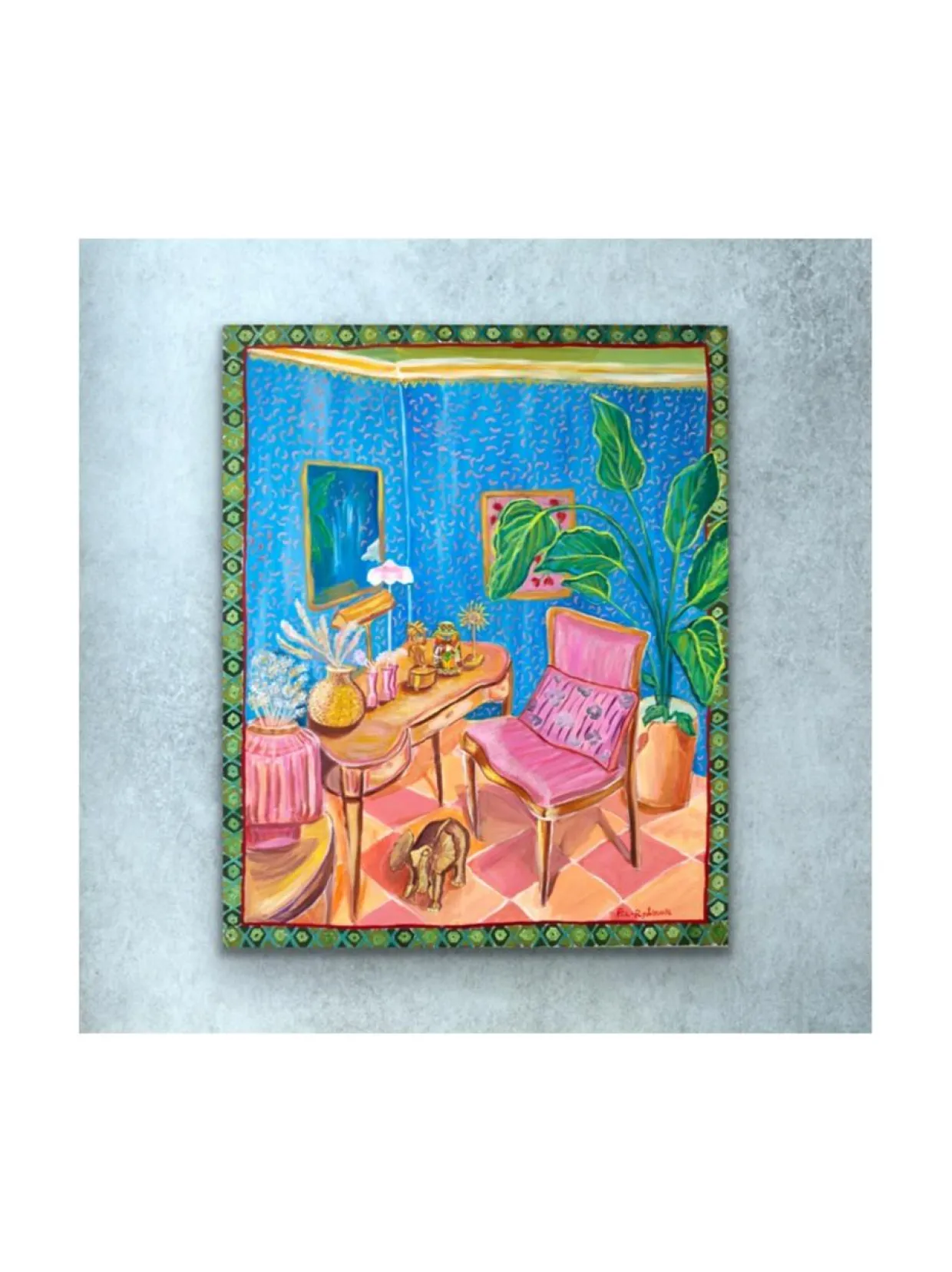 ”Unelmien olohuone” on vuonna 2023 valmistunut alkuperäinen Pia Rydmanin akryylimaalaus. Se on maalattu pellavakankaalle ja sen koko on 100×80 cm. Ripustusvalmis.
