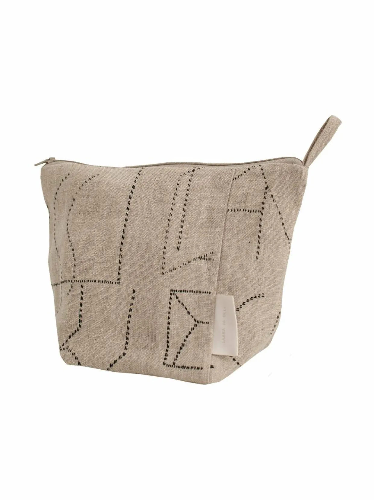 Laukku on valmistettu 100 % hamppukankaasta. Kosmetiikkalaukun Unien talo -kuvio on saanut inspiraationsa 104 vuotta vanhan hirsitalon korjausprojektista ja arkkitehtuurin unelmista.