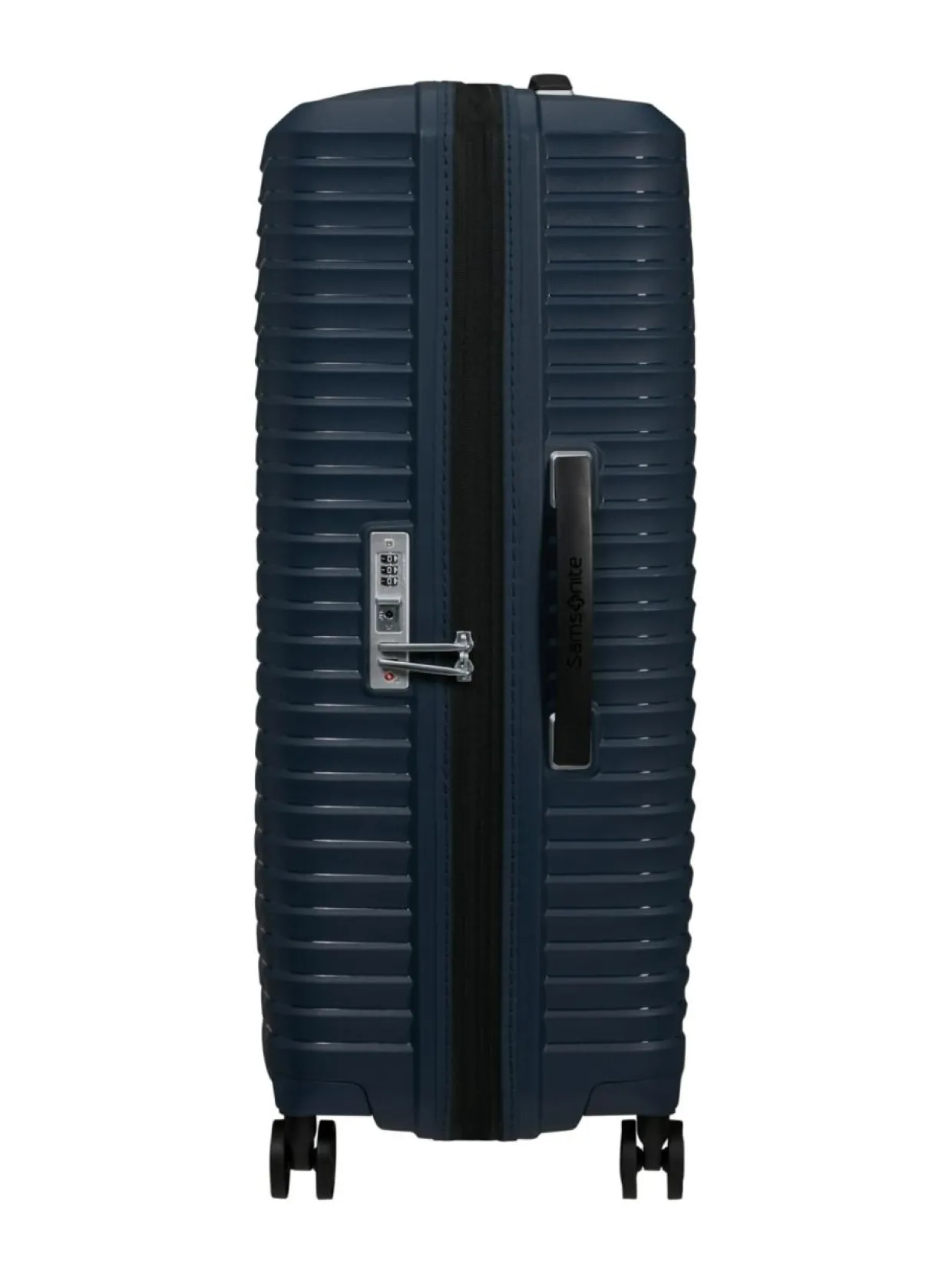 Samsonite Upscape -matkalaukku on valmistettu laadukkaasta ja kevyestä polypropeenista ja sen muotoilu varmistaa maksimaalisen tilan tavaroillesi. Saat eroteltua tavarasi taskullisella tilanjakajalla ja säädettävillä henkseleillä. Laukussa on lisätilaa tuova laajennusosa. Tuplapyörät vähentävät ääntä ja tärinää, sekä takaavat, että laukun kanssa on mukava liikkua. 100% matkalaukun ulkokankaan, sisävuoren, sisäkuminauhan ja sisävetoketjun painosta sekä vähintään 90% ulkovetoketjun painosta ja vähintään 65% ulkokuminauhan painosta on valmistettu kierrätetystä PET-muovista.