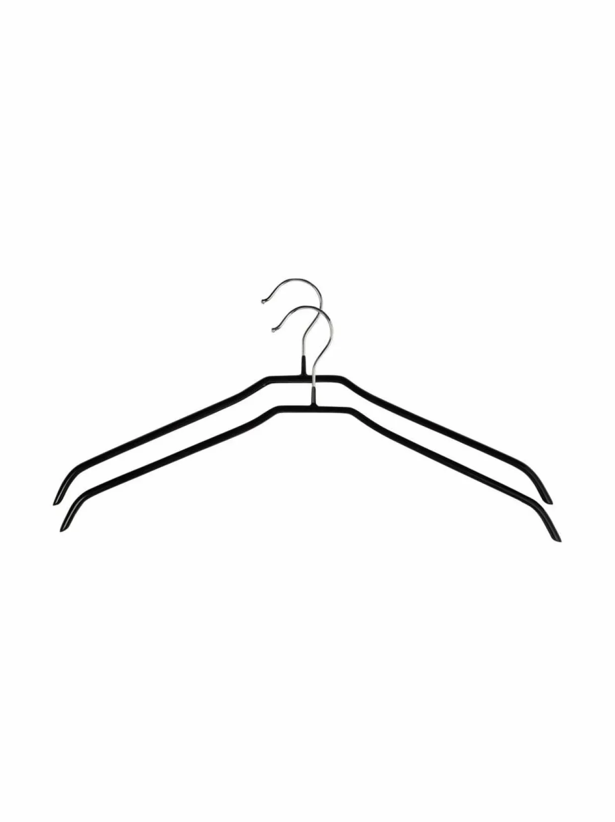 Paketissa on kaksi vaateripustinta, joiden kumipinnan ansiosta vaatteet pysyvät hyvin paikoillaan.