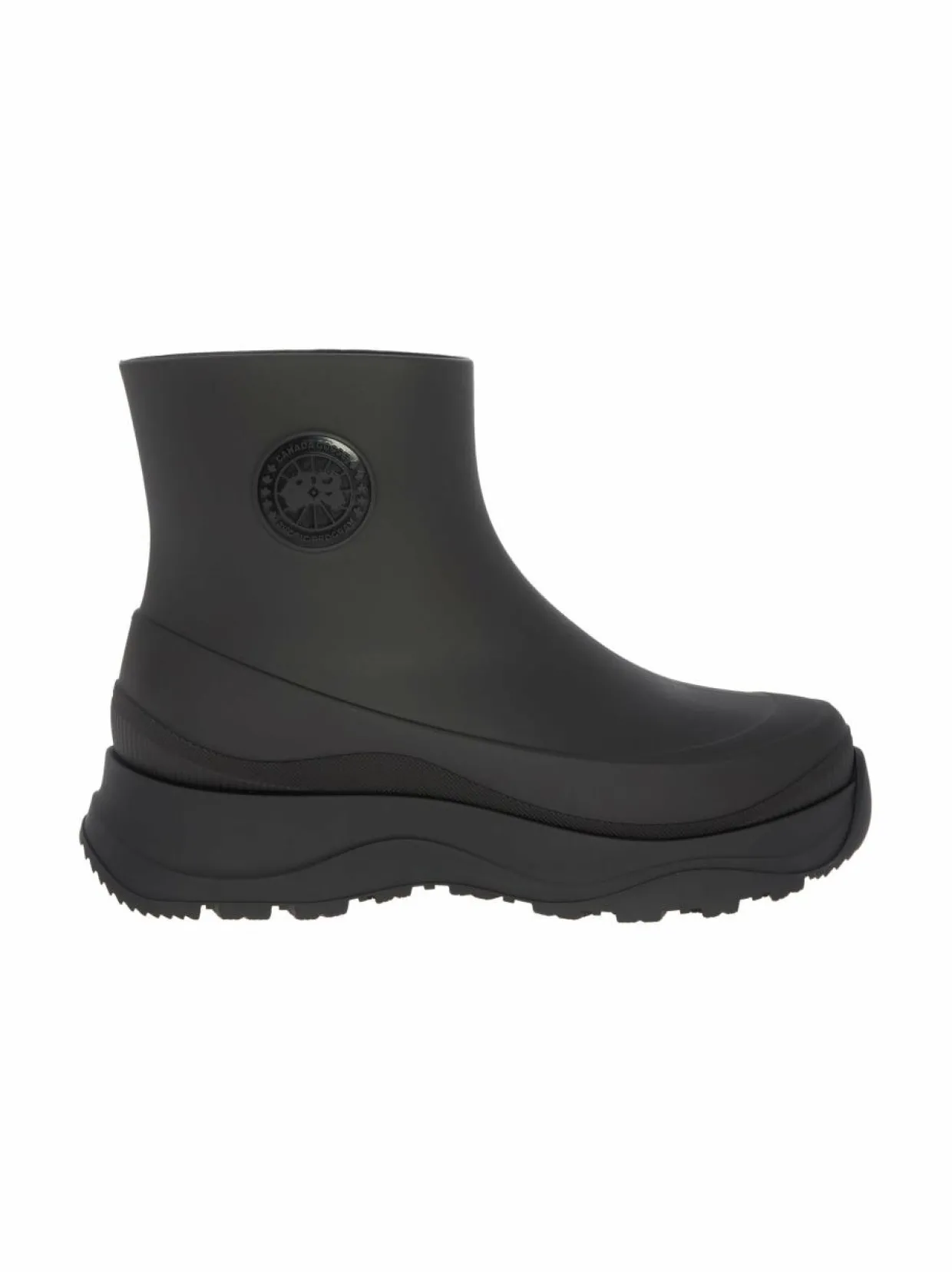 Canada Goose -kumisaappaat ovat täydellinen valinta kylmiin ja kosteisiin olosuhteisiin. Näissä mustissa nilkkasaappaissa on vedenpitävä rakenne, joka pitää jalat kuivina koko päivän ajan. Saappaiden sisällä on irrotettava shearling-pohjallinen, joka lisää lämpöä ja mukavuutta, kun taas kosteutta siirtävä pohja pitää jalat raikkaina. Tukeva ja kuviollinen kumipohja takaa hyvän pidon liukkailla pinnoilla. Tyylikäs logo-merkki ulkosivulla viimeistelee saappaat.