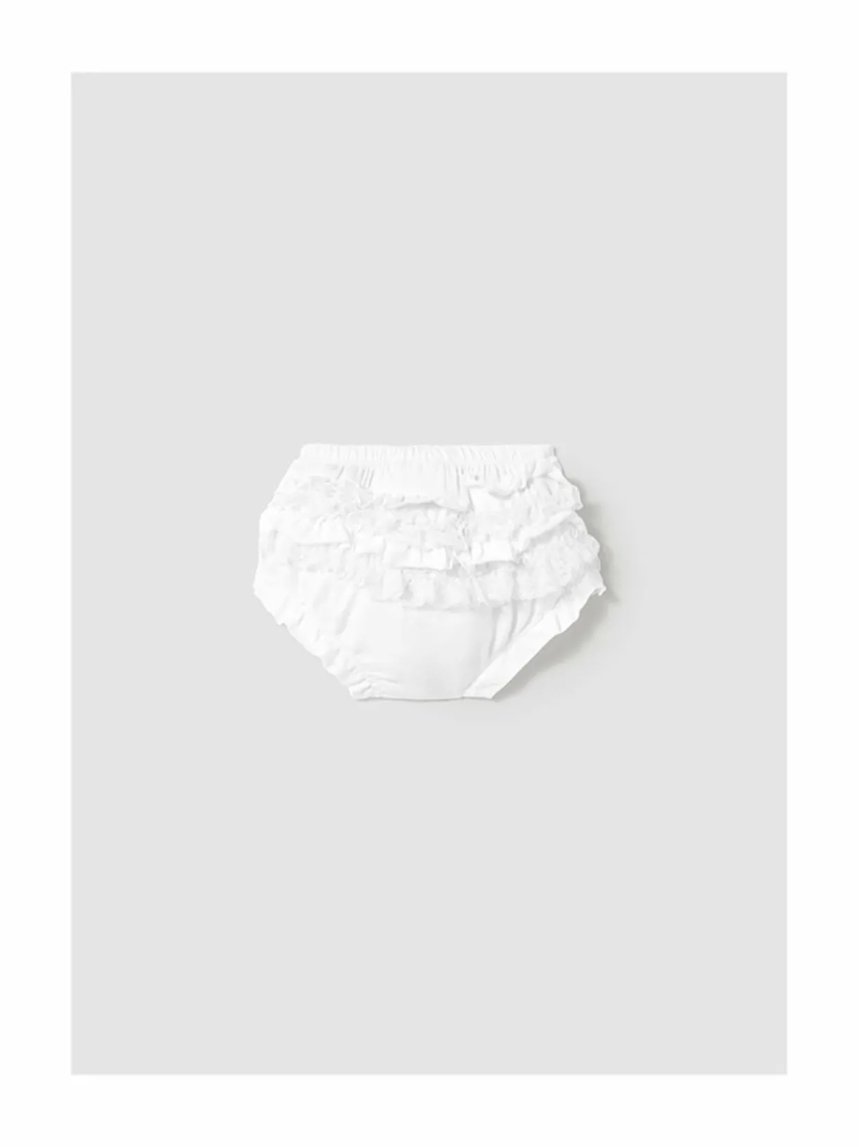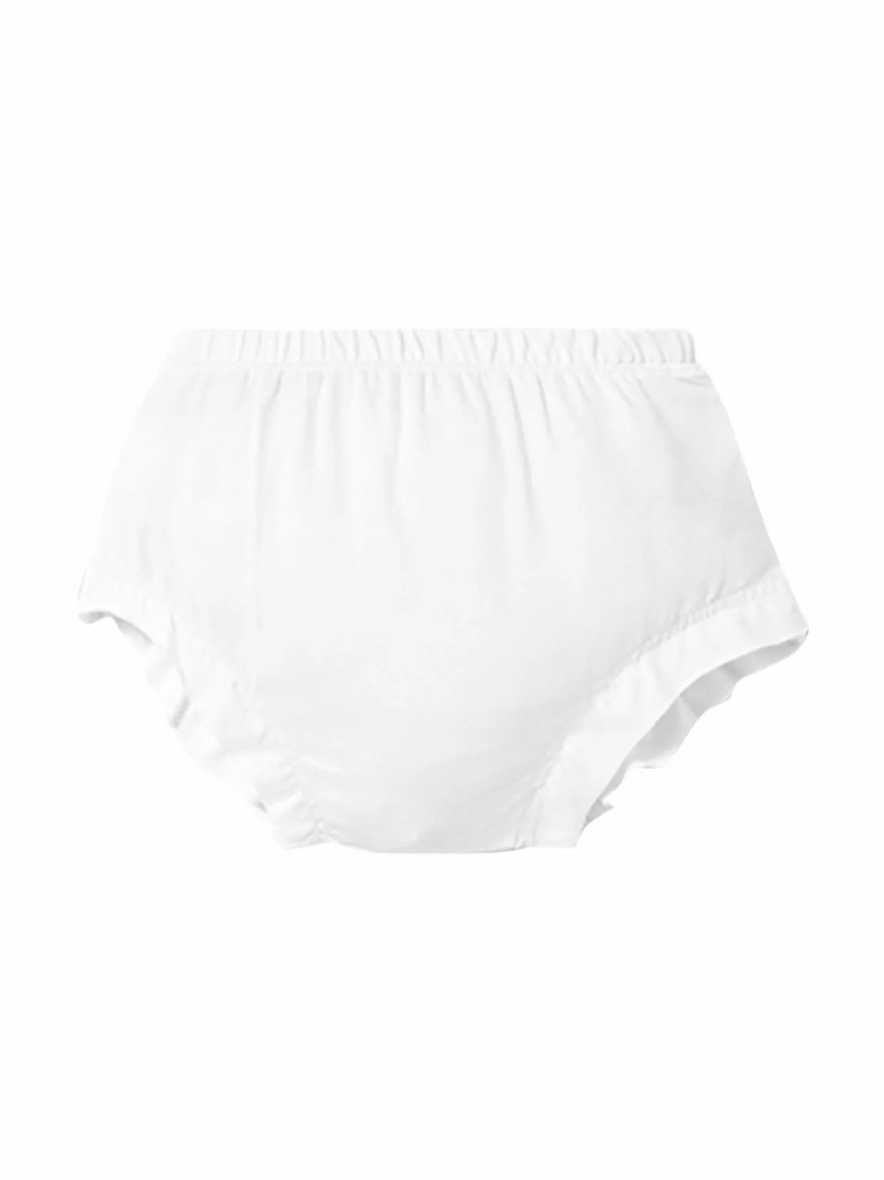 Nämä röyhelöiset vauvojen alushousut ovat valmistettu pehmeästä puuvillasta, pitäen pienokaisen ihon pehmeänä ja hengittävänä koko päivän ajan. Alushousuissa on korkea vyötärö, joustavat lahkeensuut ja riittävästi tilaa vaipalle. Ne sopivat täydellisesti esimerkiksi juhlamekon alle.