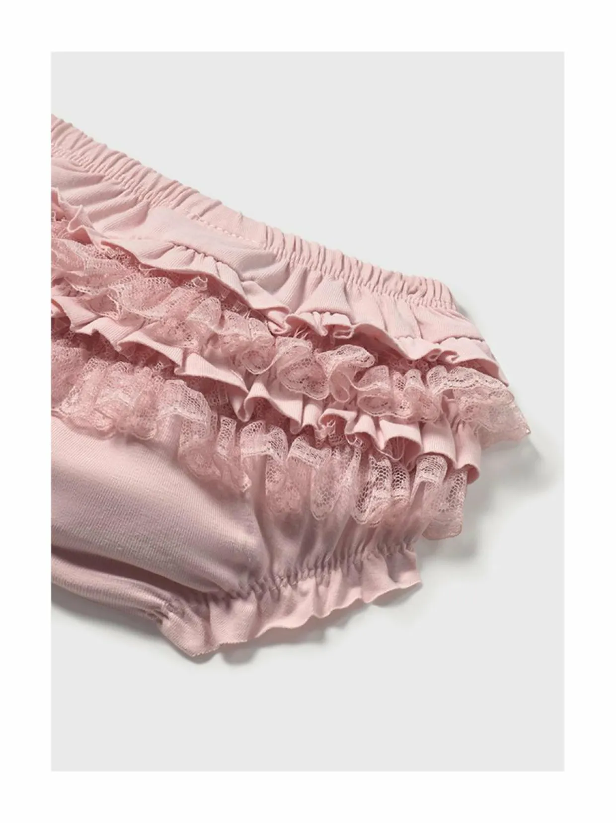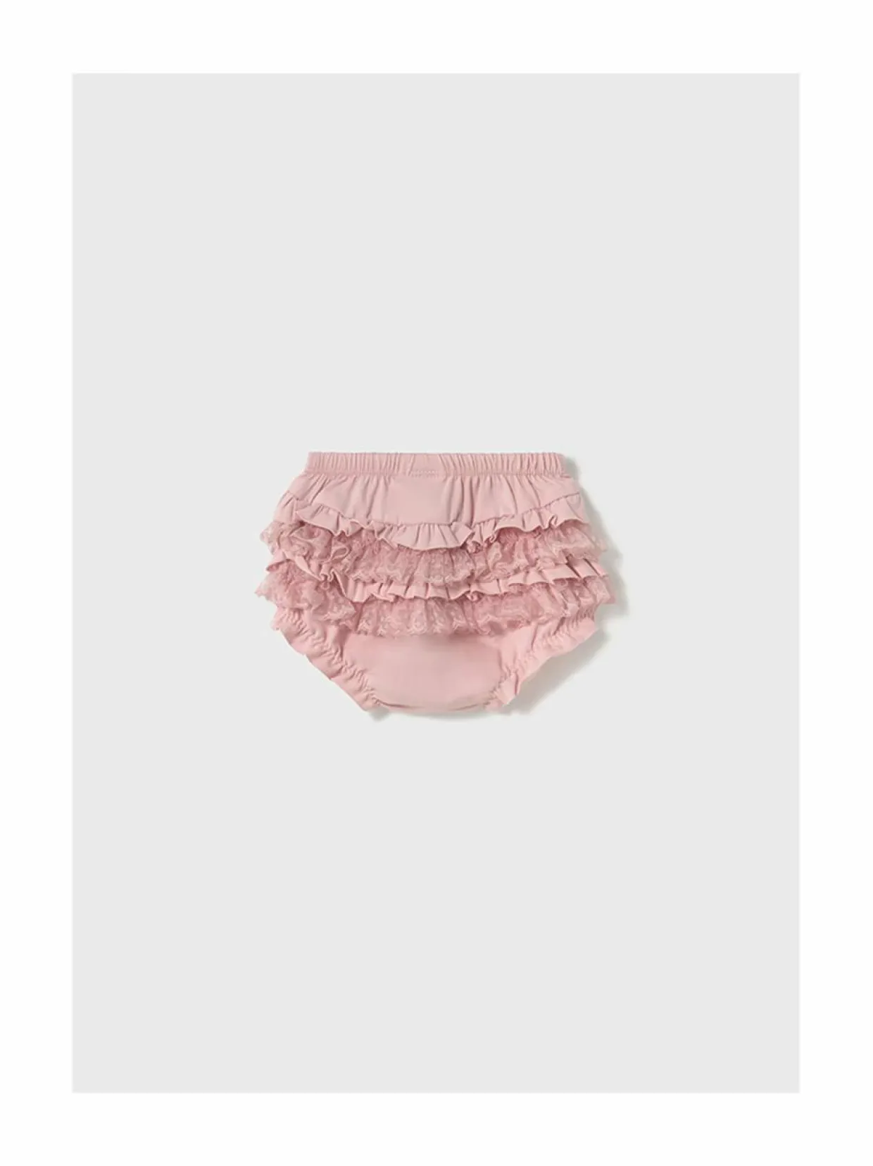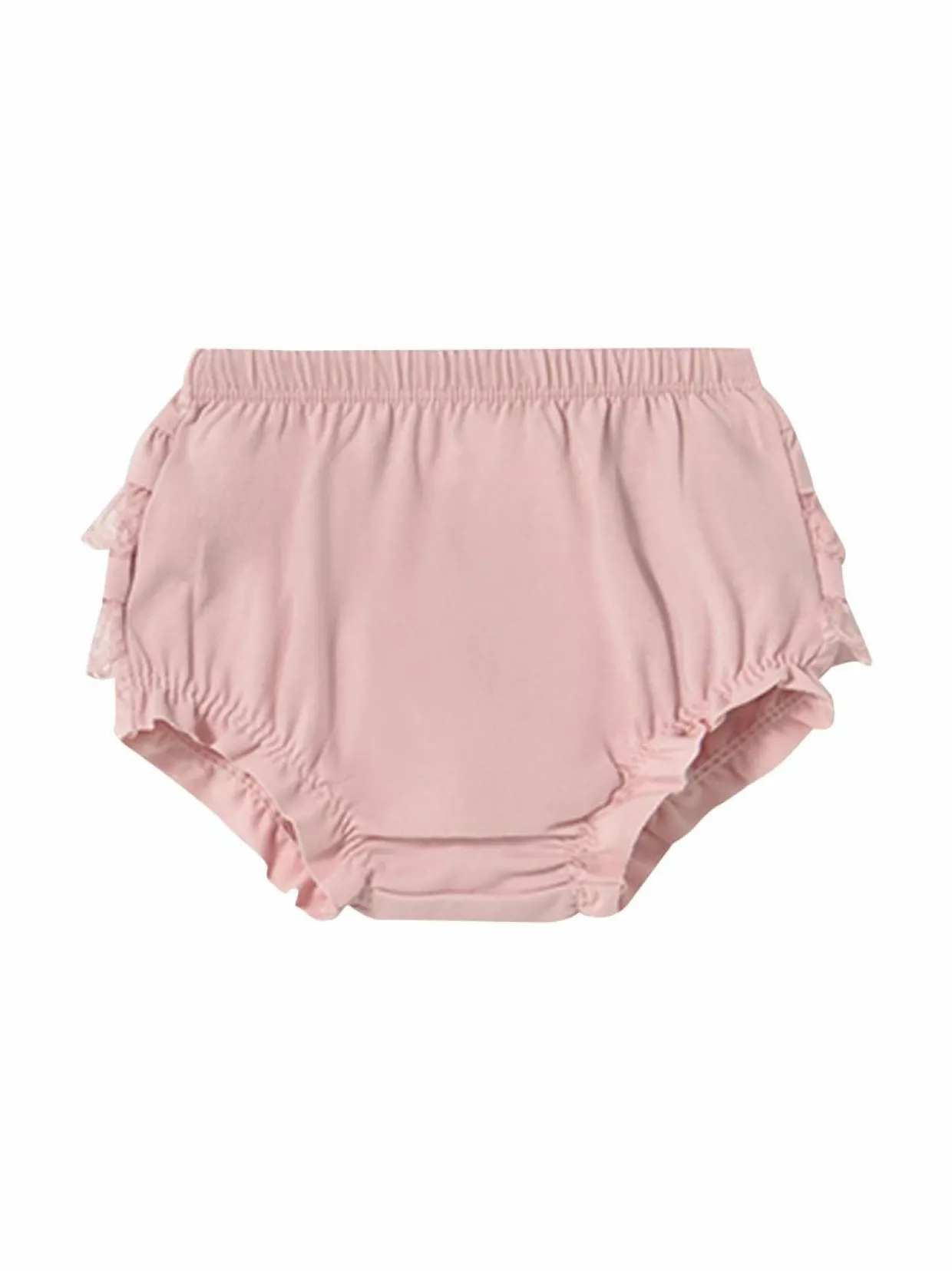 Nämä röyhelöiset vauvojen alushousut ovat valmistettu pehmeästä puuvillasta, pitäen pienokaisen ihon pehmeänä ja hengittävänä koko päivän ajan. Alushousuissa on korkea vyötärö, joustavat lahkeensuut ja riittävästi tilaa vaipalle. Ne sopivat täydellisesti esimerkiksi juhlamekon alle.
