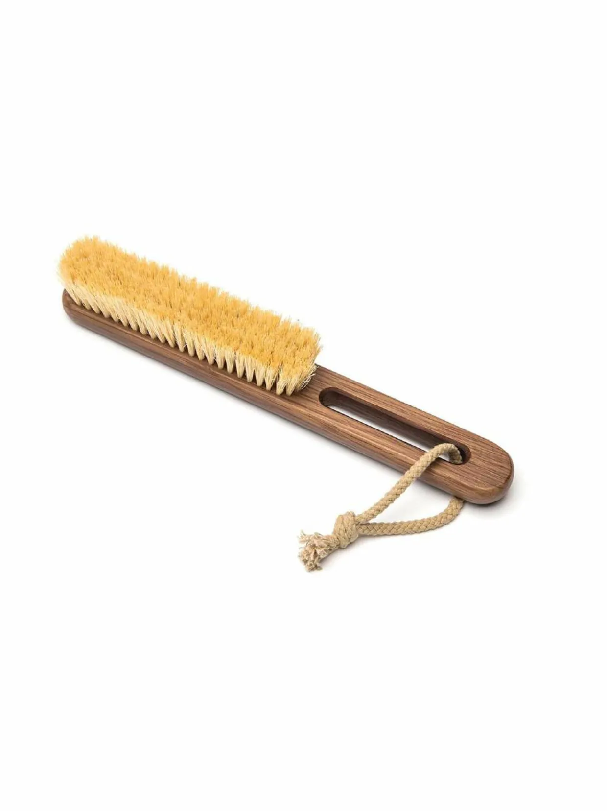Stockholm Steameryn Vegan-vaateharja poistaa hellävaraisesti tekstiileistä pölyn, hiukset, eläinten karvat ja muun kevyen irtolian. Luonnonharjaksinen vaateharja on tehokkain, hellävaraisin, monipuolisin ja kestävin valinta vaatteiden siistimiseen ja huoltamiseen. Luonnolliset harjakset ovat sisalia. Harjassa on tammipuinen varsi. Vaateharja sopii esimerkiksi denim- ja pellavavaatteille sekä kodintekstiilille eikä aremmille materiaaleille kun silkki ja sifonki.