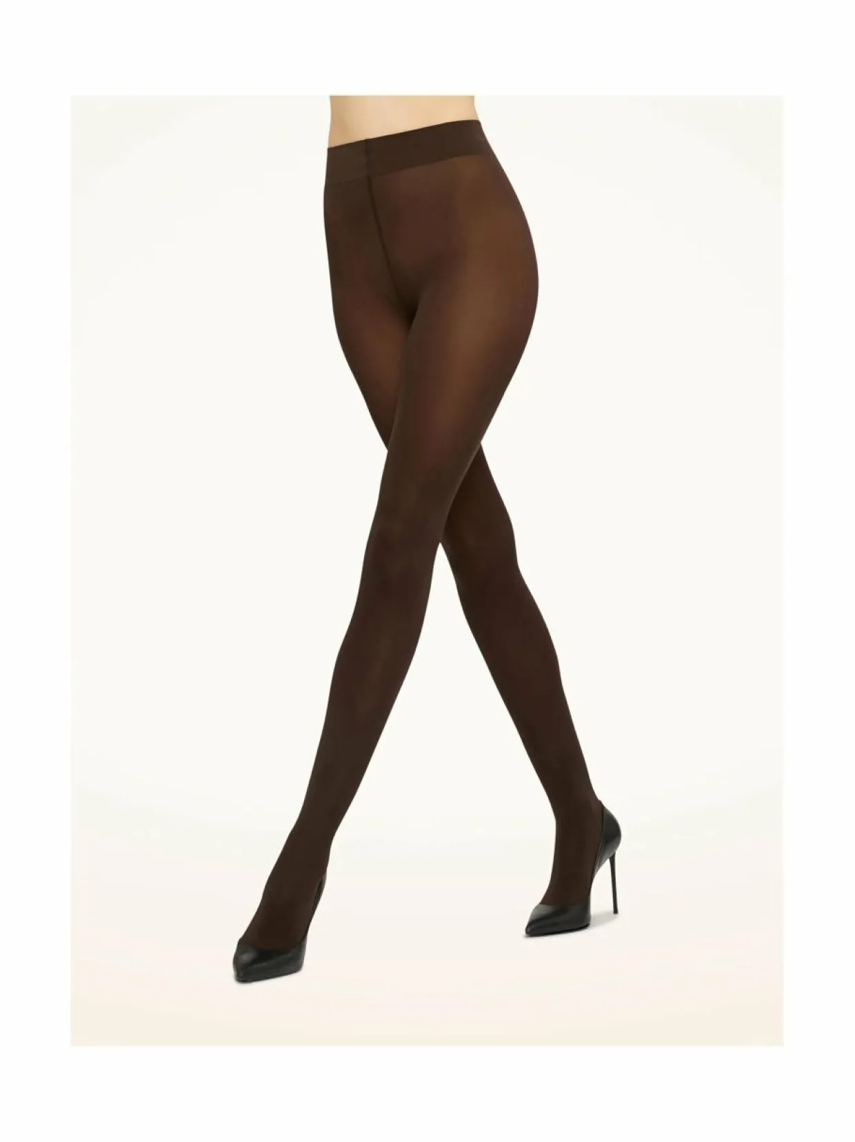 Wolford Velvet De Luxe -sukkahousut ovat silkinpehmeät ja niissä on leveä vyötärönauha, jota somistaa merkin logo. Nämä sukkahousut ovar erittäin joustavat, mikä takaa hyvän istuvuuden. Mattamaisen ulkonäön ja pehmeän kosketustuntuman ansiosta ne saavat jalat näyttämään ja tuntumaan uskomattomilta. Ne ovat jokaisen naisen luottopari viileän kauden vaatekaappiin.