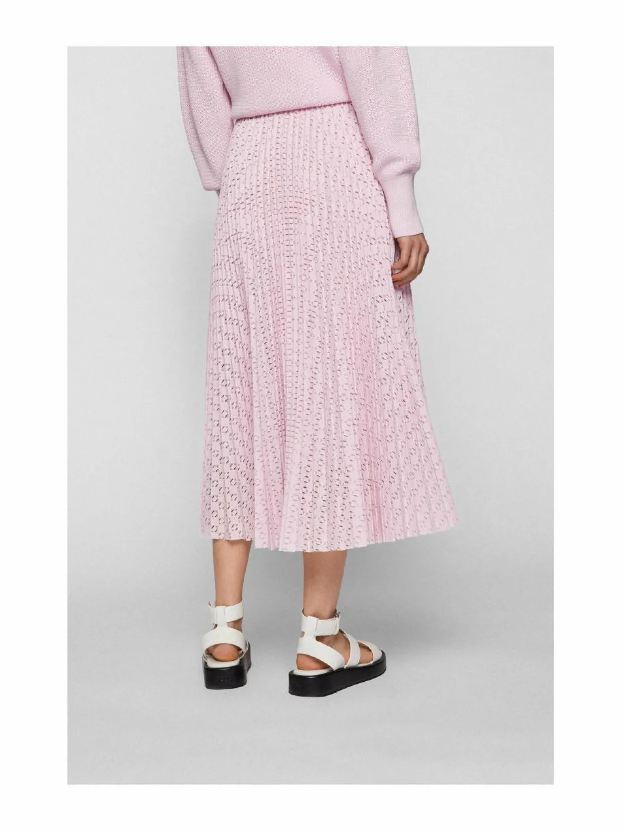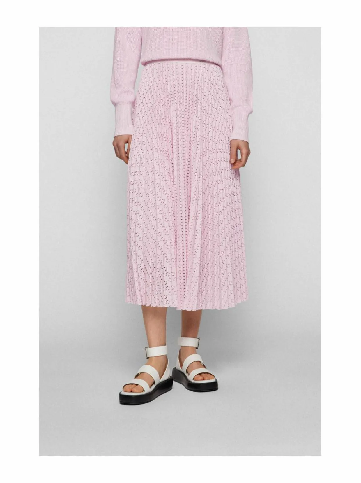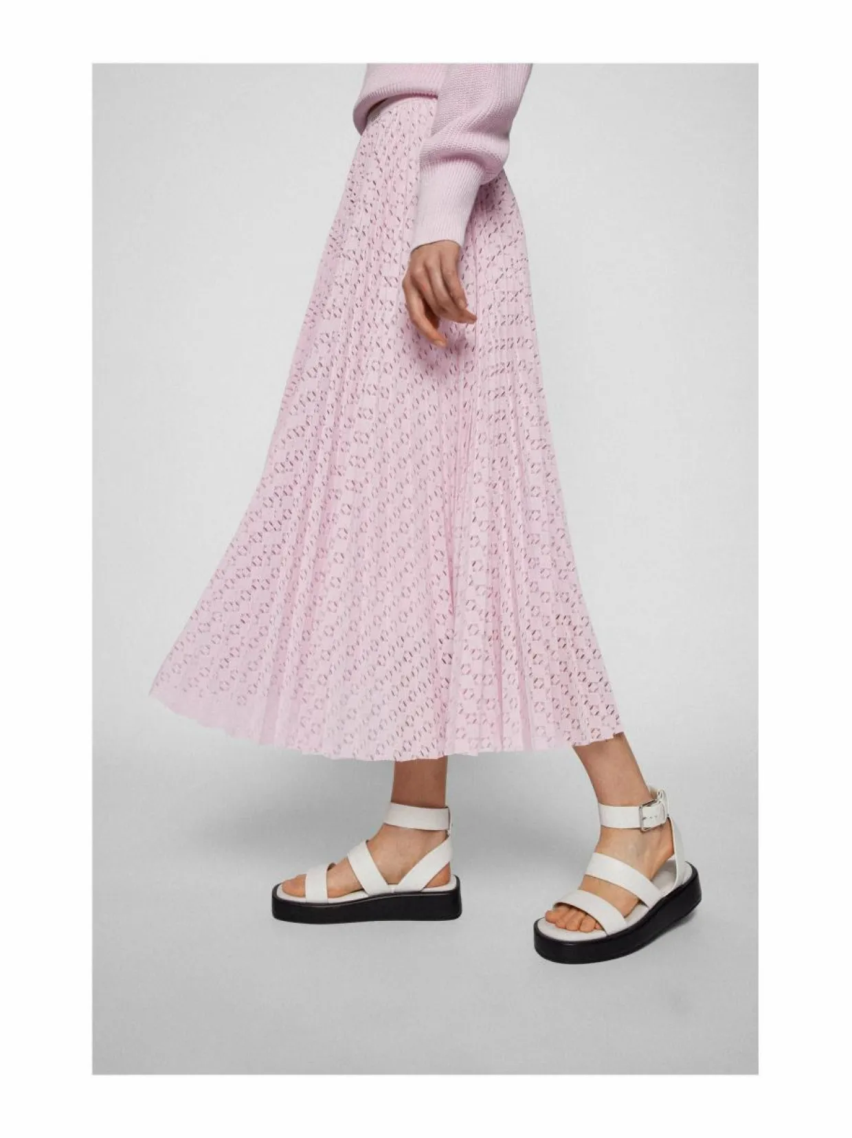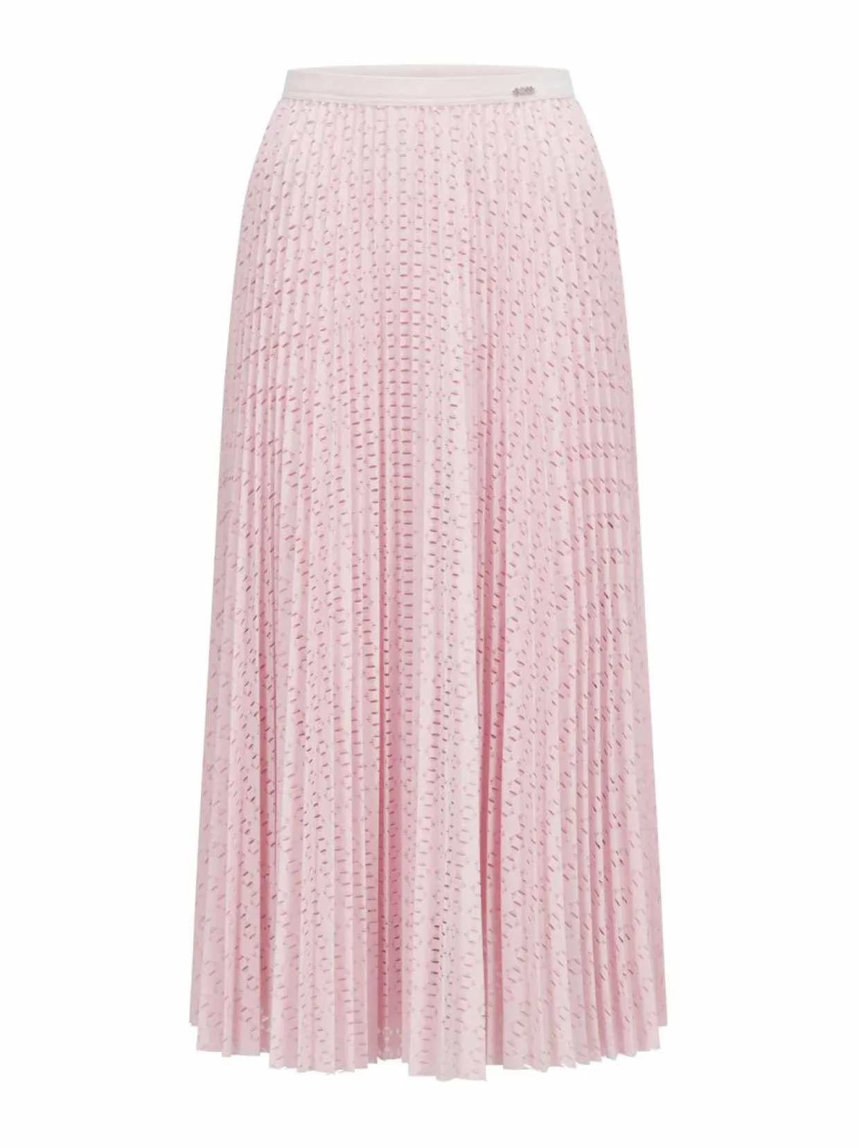 Erittäin tyylikäs ja ilmeeltään kevyt pliseerattu hame. Vyötäröllä mukava joustonauha. Eleganssia lisäävät kauttaaltaan pitsimäiset reikäkirjontakuviot.