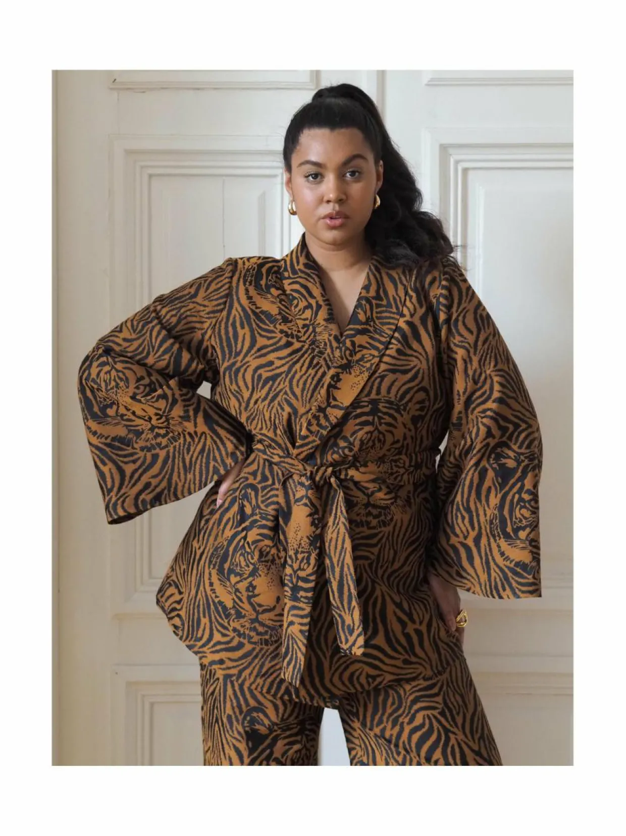 Materiaali35 % polyesteri, 34 % viskoosi, 32 % puuvilla PesuohjeetKonepesu VäriVIGAROUS CARAMEL Avainsanatjakku, bleiseri, takki, tiikerikuvio, Uhana, päällystakki, kevättakki