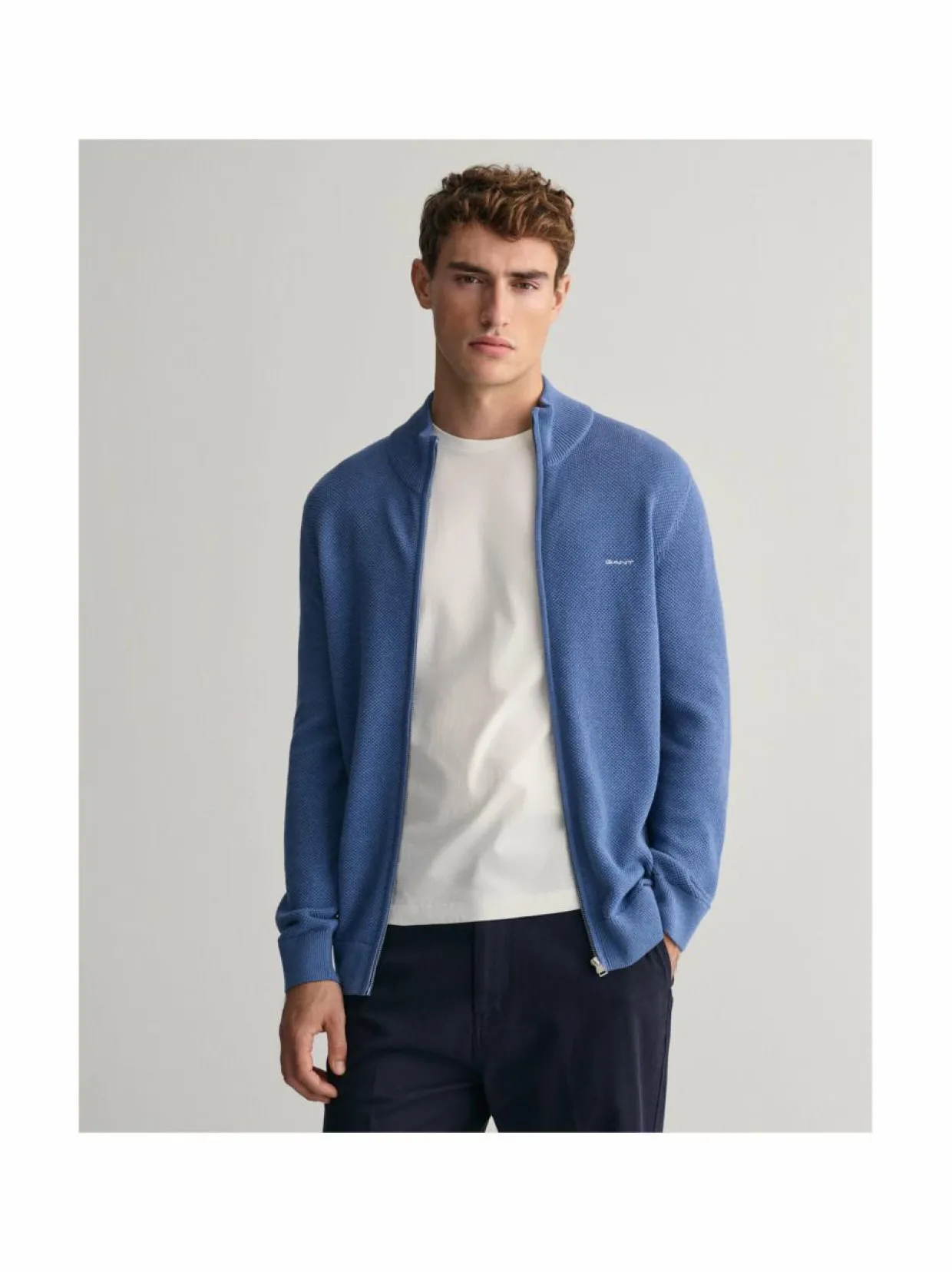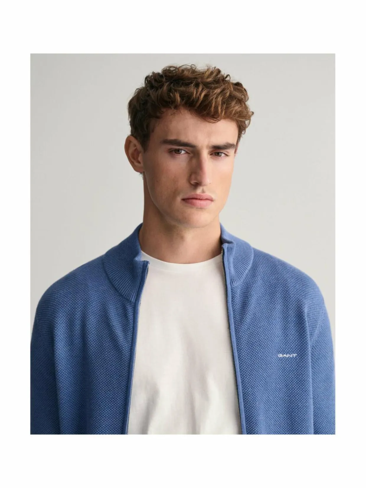 Kevyestä puuvillapikeestä valmistetussa neuletakissa on täyspitkä vetoketju edessä, normaali mitoitus ja rinnassa kirjailtu GANT-logo. Tämä yksinkertainen mutta monikäyttöinen neulepusero sopii loistavasti kerrospukeutumiseen. Resorit korostavat neuletakin muotoja ja luovat miellyttävän istuvuuden.