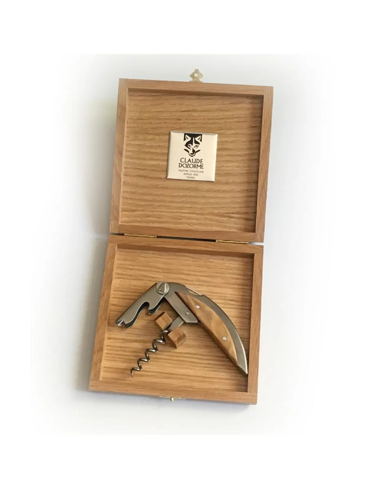 Upea ja laadukas ja kompaktinkokoinen nk. tarjoilijamallinen viinipullonavaaja. Käsinvalmistettu näyttävä oliivipuinen kahva. Pakattu kauniiseen tammesta valmistettuun lahjalaatikkoon. Erinomainen lahja viininystävälle, viiniharrastajalle tai -ammattilaiselle. Valmistettu Ranskassa perinteikkään Claude Dozormen toimesta.