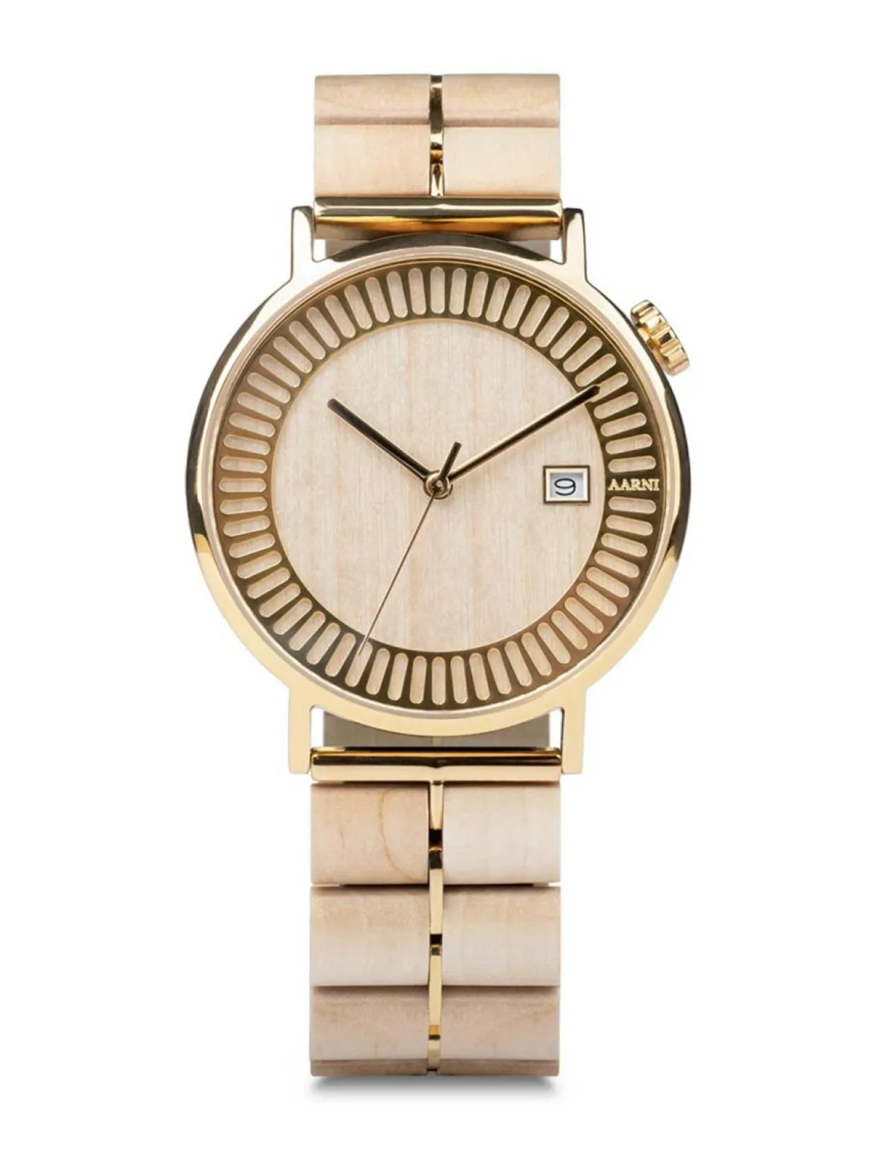 Kauniin vaalea koivu yhdistyy Aaltojen ajattomaan muotoiluun saumattomasti. Kellon sydämenä sykkii arvostettu Miyotan automaattikoneisto.